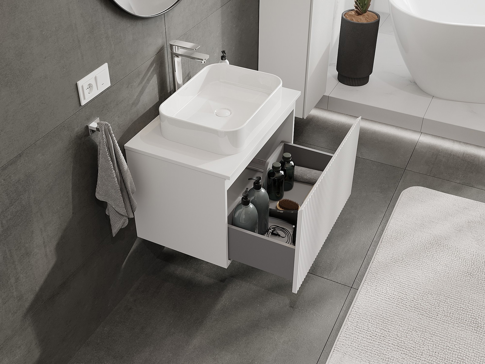 Corpul dulapului este livrat complet asamblat, ceea ce înseamnă confort maxim și economie de timp. Nu trebuie să pierzi ore întregi asamblând mobilierul – este suficient să îl montezi în locul ales din baie. Aceasta este soluția ideală pentru persoanele care prețuiesc montajul rapid și efectul imediat.