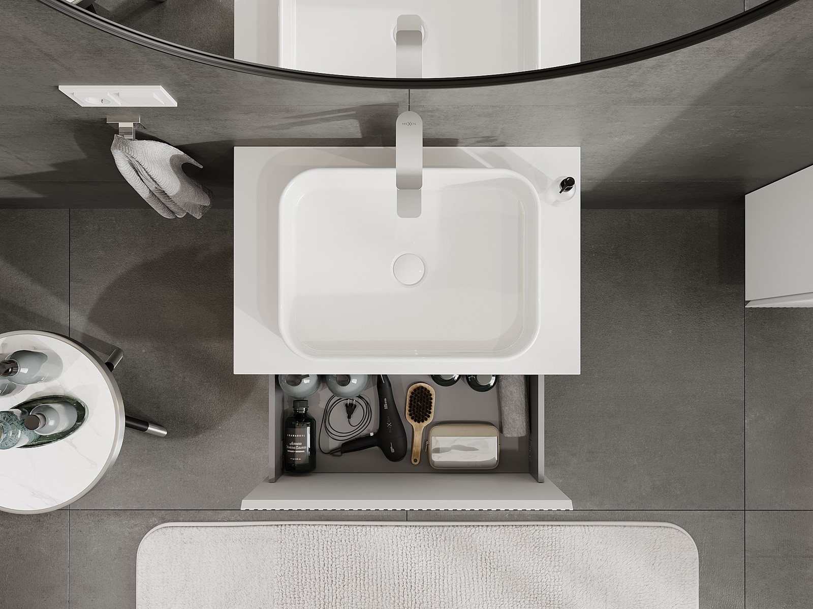 Mobilierul nostru modular pentru baie poate fi combinat în diverse configurații de culori, permițând personalizarea completă. Puteți alege atât aspectul, cât și funcțiile fiecărui element, ceea ce permite adaptarea mobilierului la preferințele dvs. stilistice și funcționale.