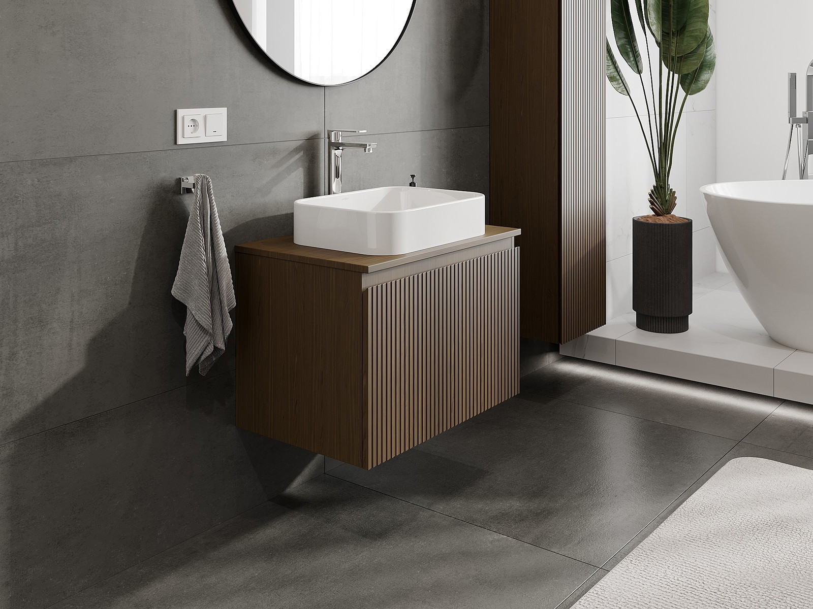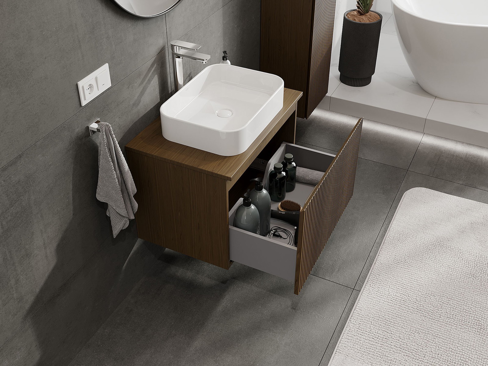 Mexen Rivel dulap de baie sub lavoar 70 cm cu blat, 1 sertar, canelat, nuc - 91A20-07047-1-BFC86