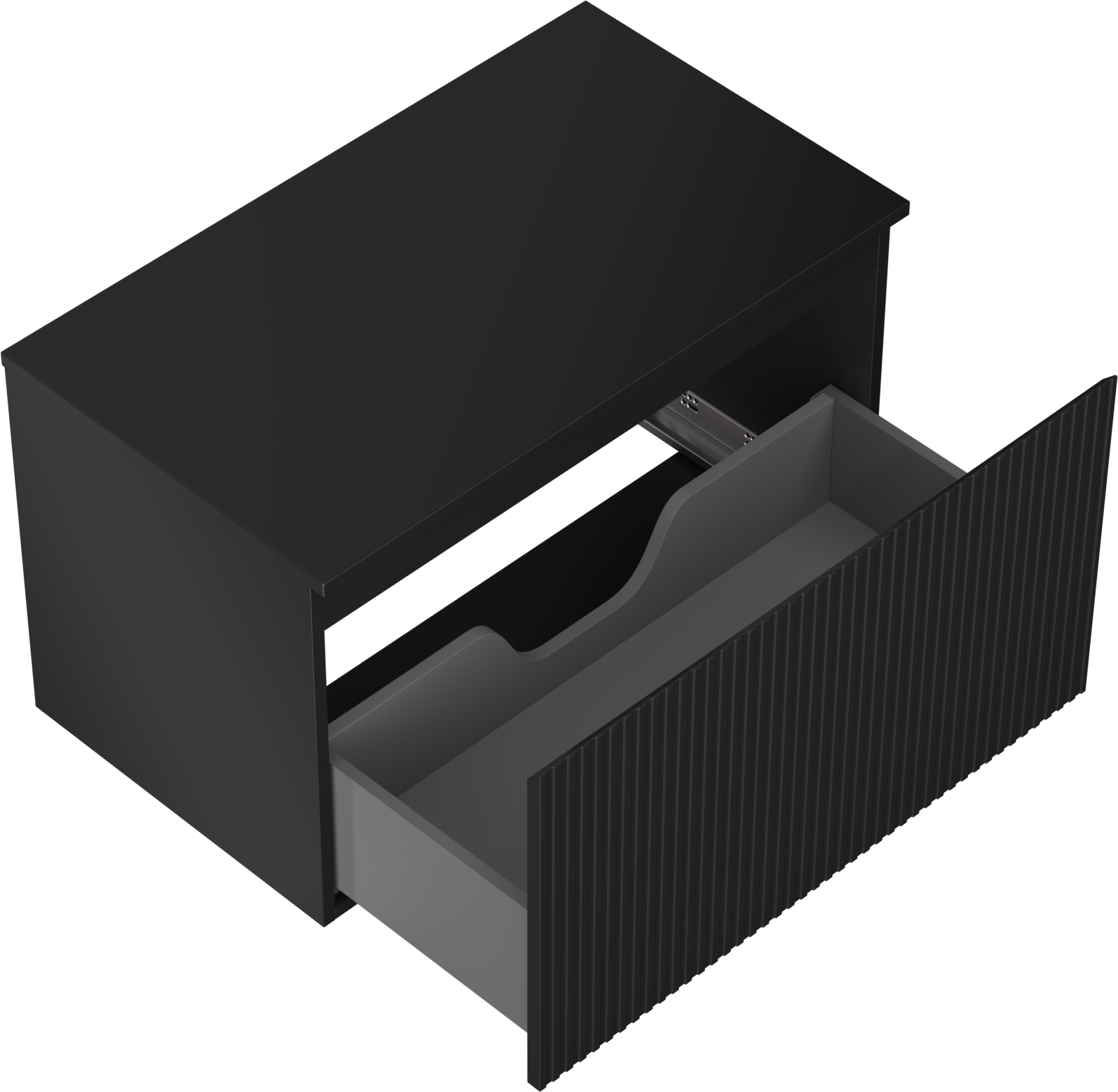 Decupajul în sertar este proiectat în așa fel încât să acomodeze sifonul, care este esențial în instalațiile de lavoare. Datorită acestui fapt, mobila poate fi montată complet funcțională, fără a fi necesară renunțarea la spațiul din sertar în favoarea instalației.