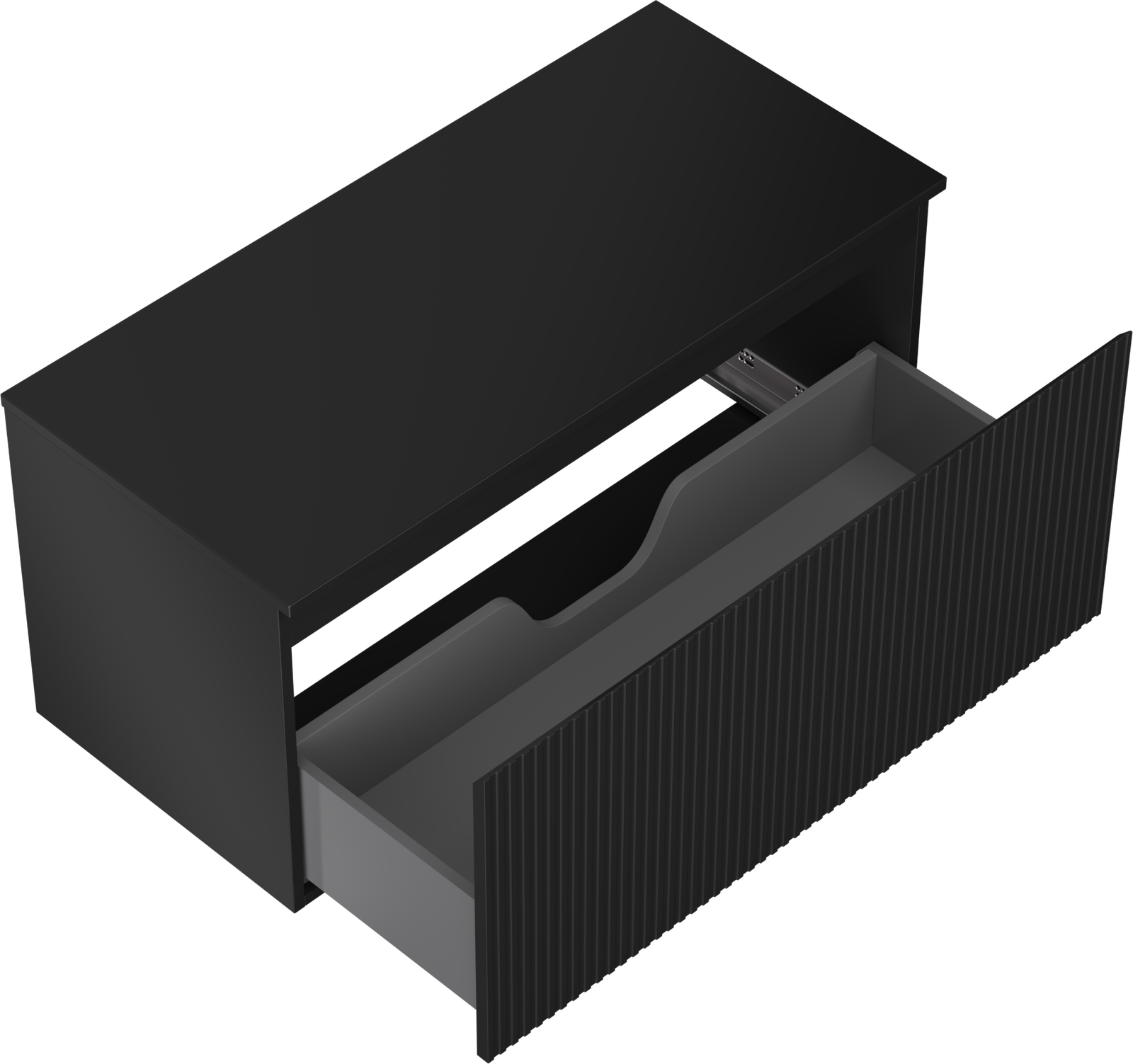 Decupajul în sertar este proiectat în așa fel încât să acomodeze sifonul, care este esențial în instalațiile de lavoare. Datorită acestui fapt, mobila poate fi montată complet funcțională, fără a fi necesară renunțarea la spațiul din sertar în favoarea instalației.