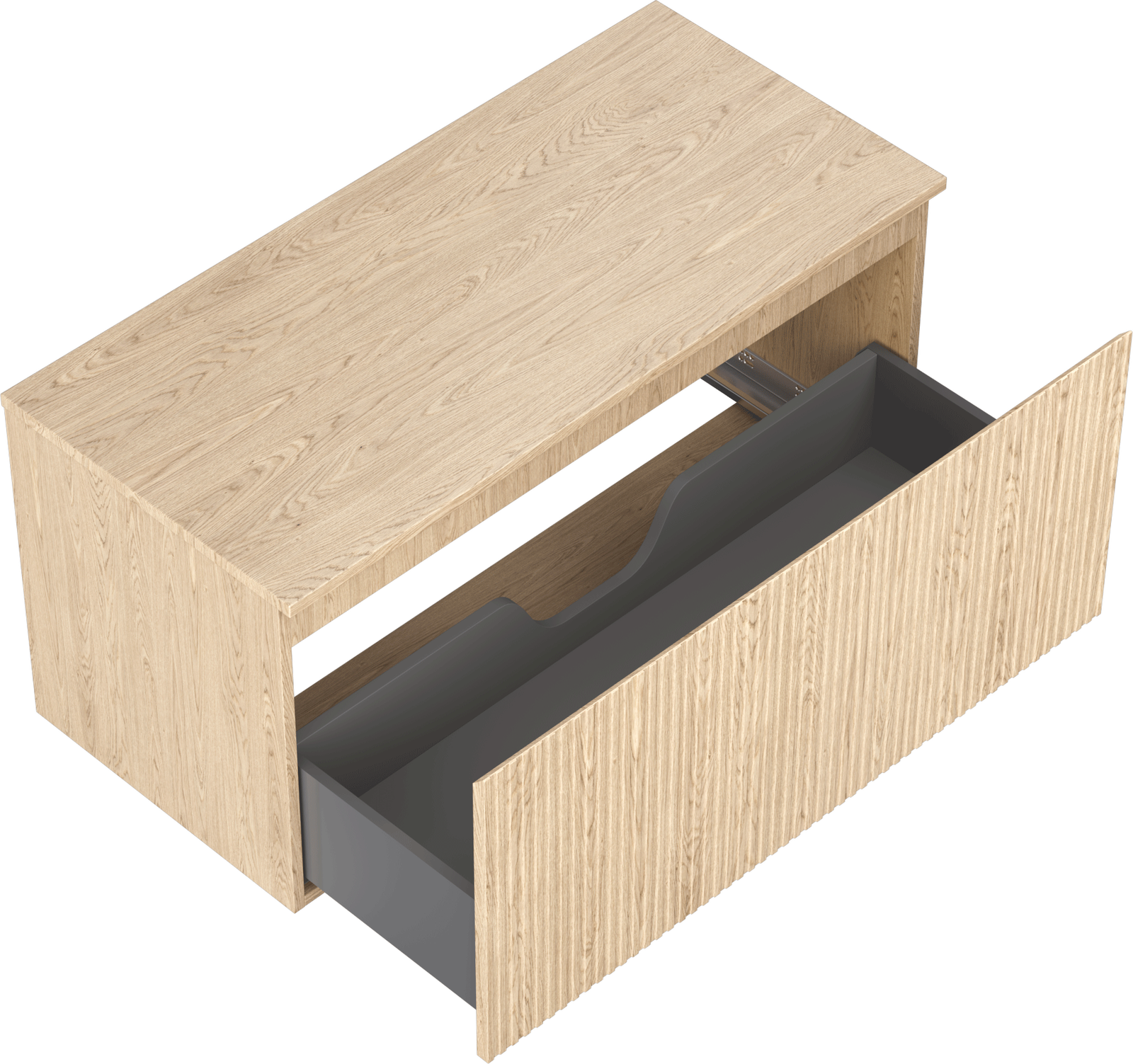 Decupajul în sertar este proiectat în așa fel încât să acomodeze sifonul, care este esențial în instalațiile de lavoare. Datorită acestui fapt, mobila poate fi montată complet funcțională, fără a fi necesară renunțarea la spațiul din sertar în favoarea instalației.