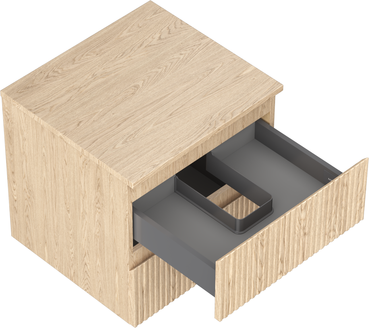 Decupajul în sertar este proiectat în așa fel încât să acomodeze sifonul, care este esențial în instalațiile de lavoare. Datorită acestui fapt, mobila poate fi montată complet funcțională, fără a fi necesară renunțarea la spațiul din sertar în favoarea instalației.
