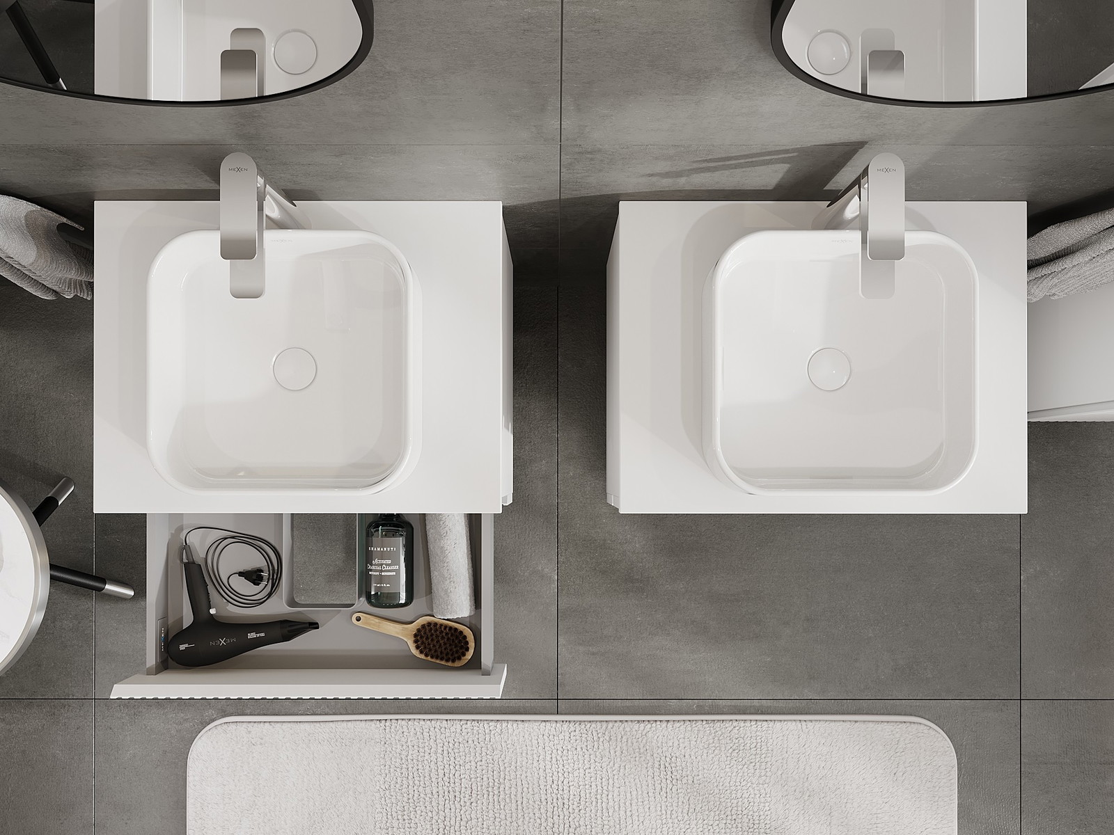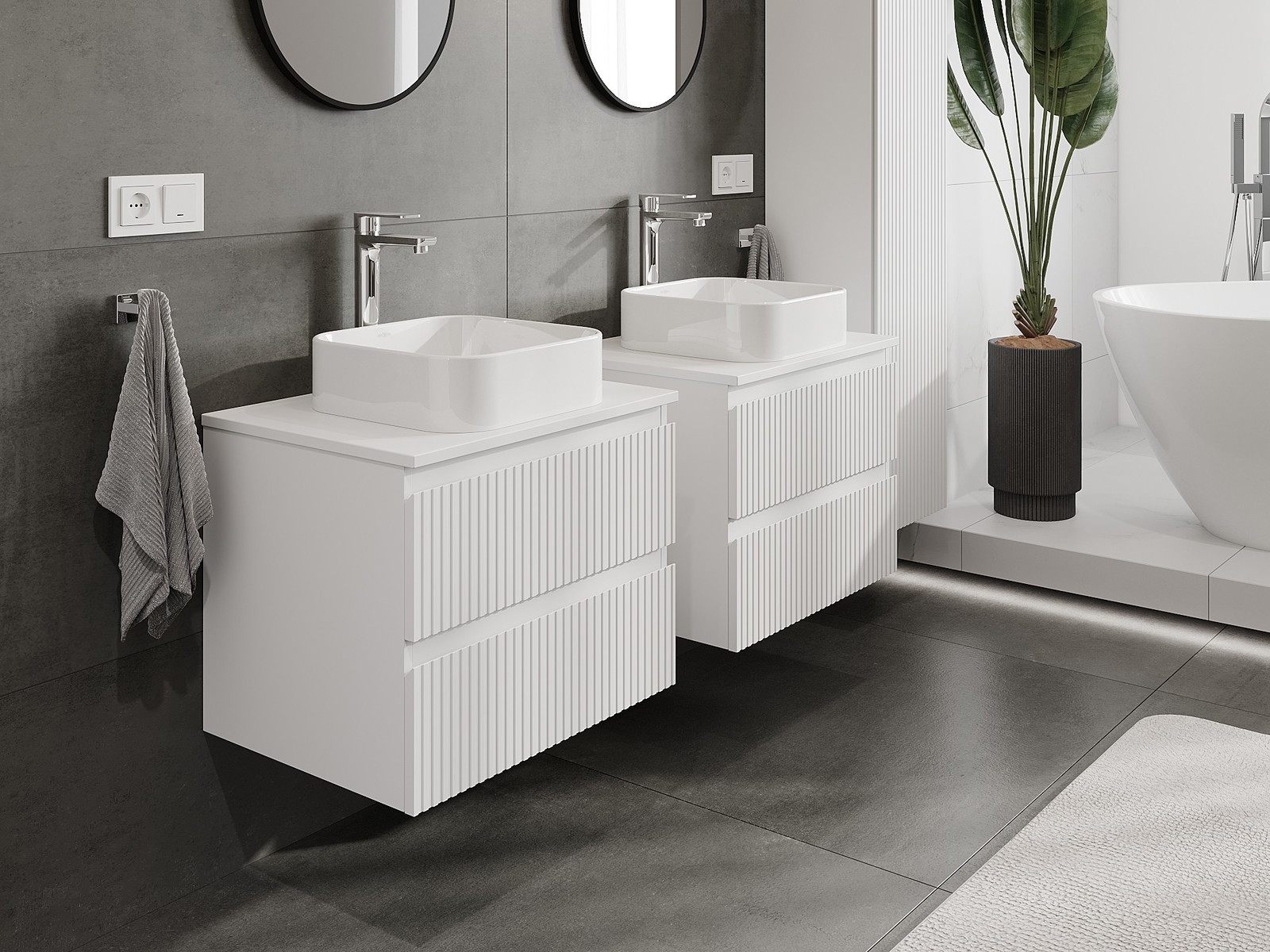Mobilierul nostru modular pentru baie poate fi combinat în diverse configurații de culori, permițând personalizarea completă. Puteți alege atât aspectul, cât și funcțiile fiecărui element, ceea ce permite adaptarea mobilierului la preferințele dvs. stilistice și funcționale.