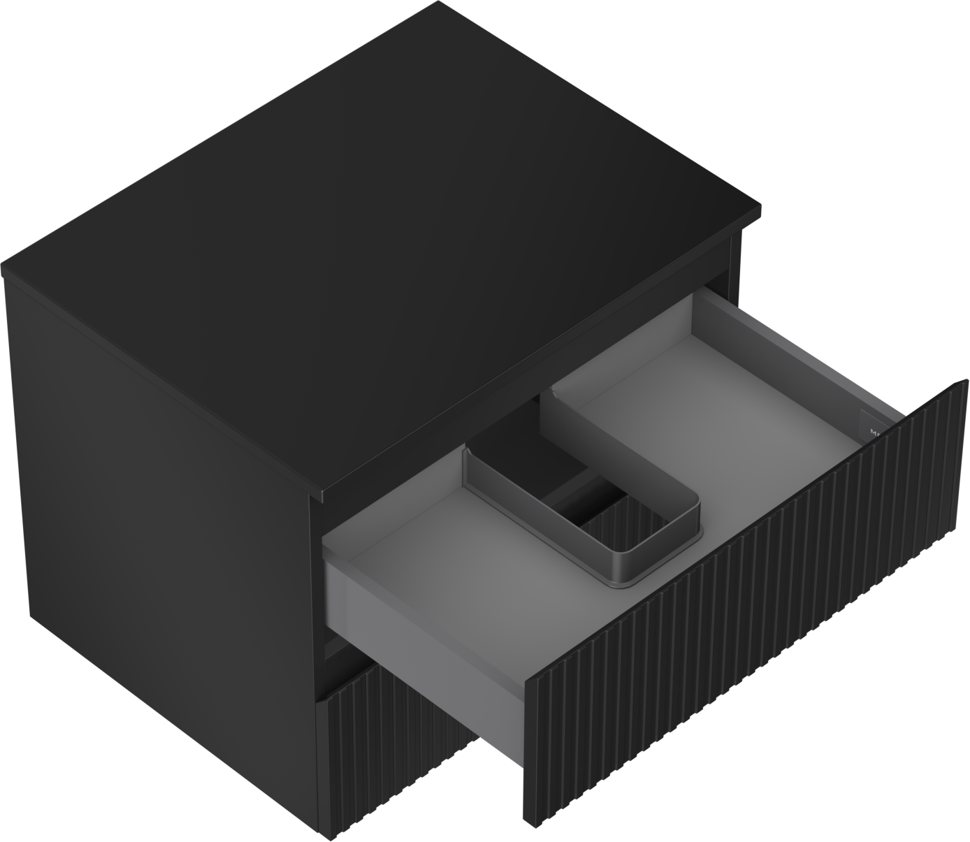 Decupajul în sertar este proiectat în așa fel încât să acomodeze sifonul, care este esențial în instalațiile de lavoare. Datorită acestui fapt, mobila poate fi montată complet funcțională, fără a fi necesară renunțarea la spațiul din sertar în favoarea instalației.