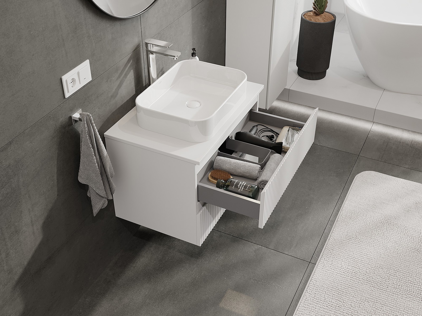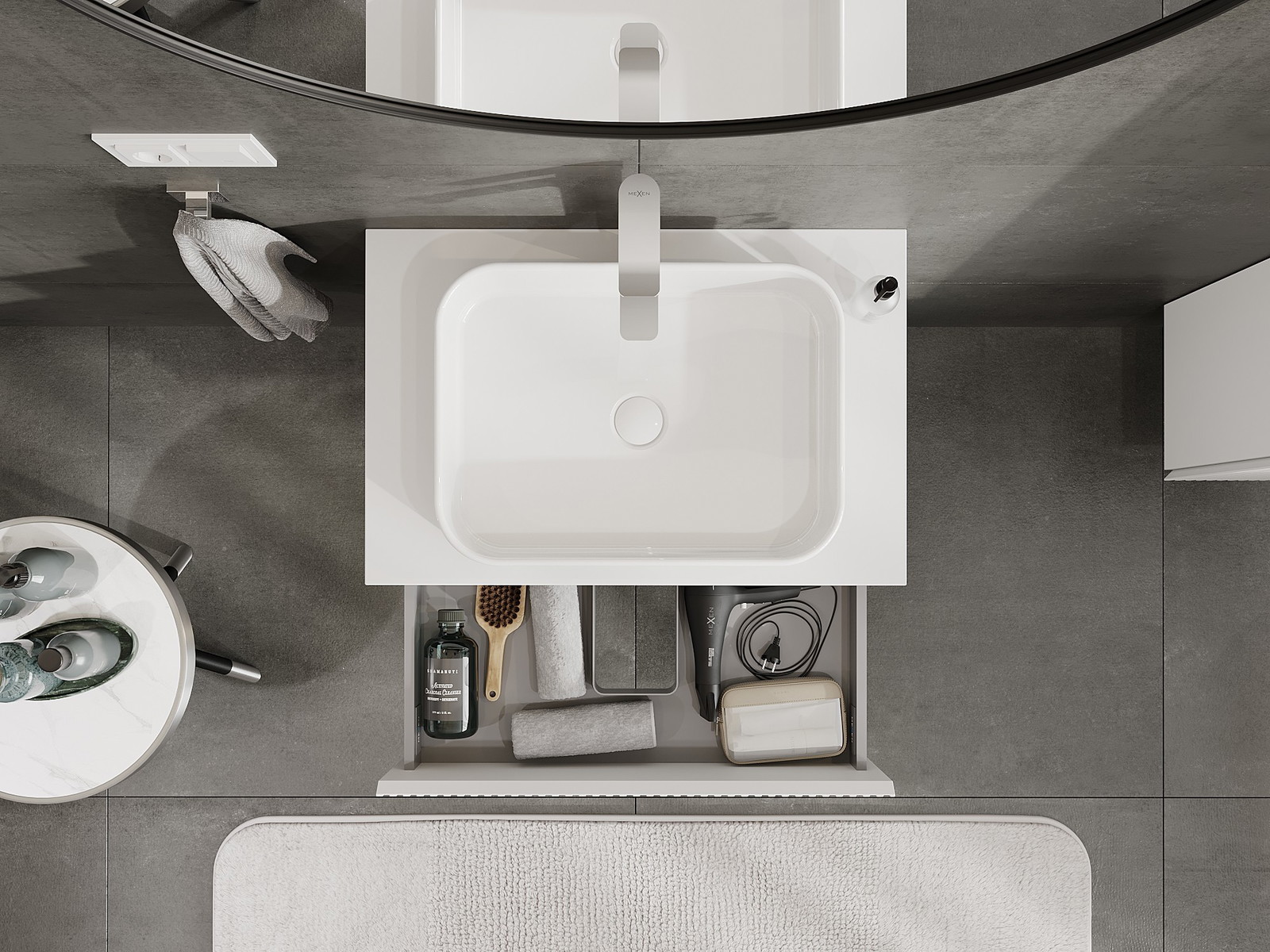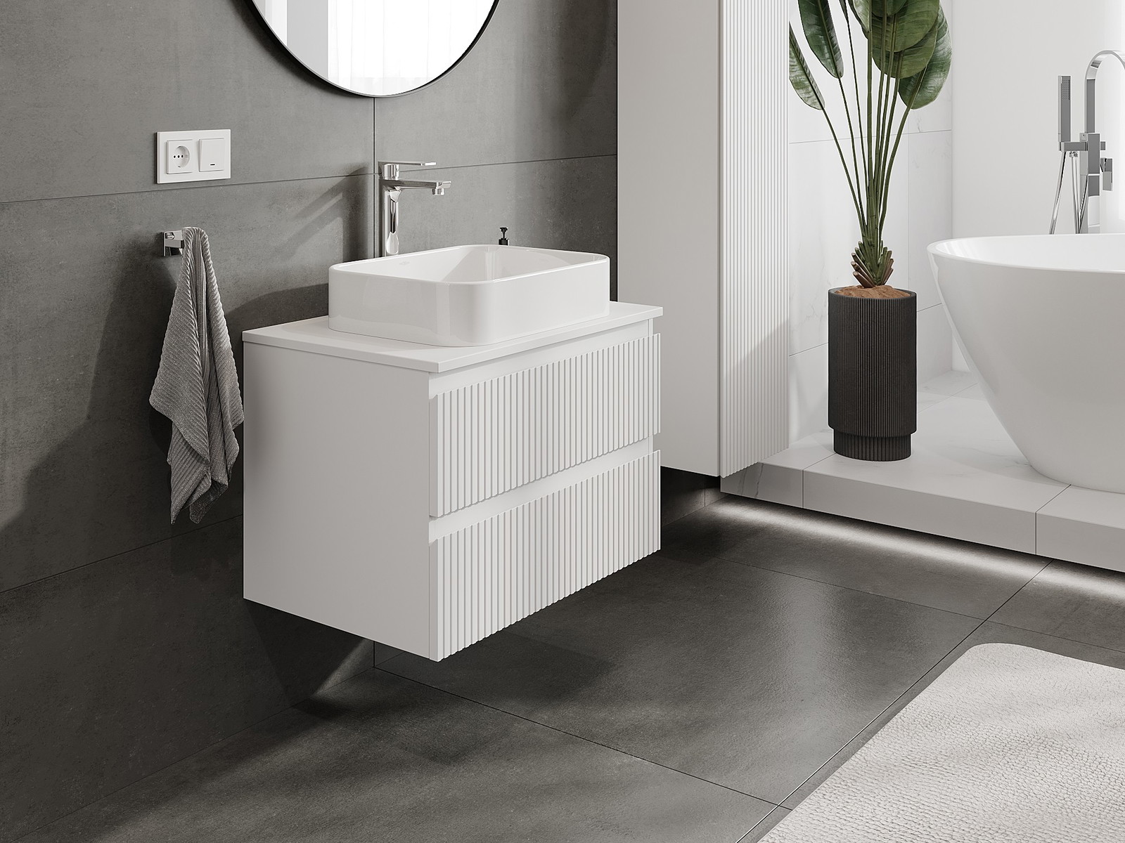 Mobilierul nostru modular pentru baie poate fi combinat în diverse configurații de culori, permițând personalizarea completă. Puteți alege atât aspectul, cât și funcțiile fiecărui element, ceea ce permite adaptarea mobilierului la preferințele dvs. stilistice și funcționale.