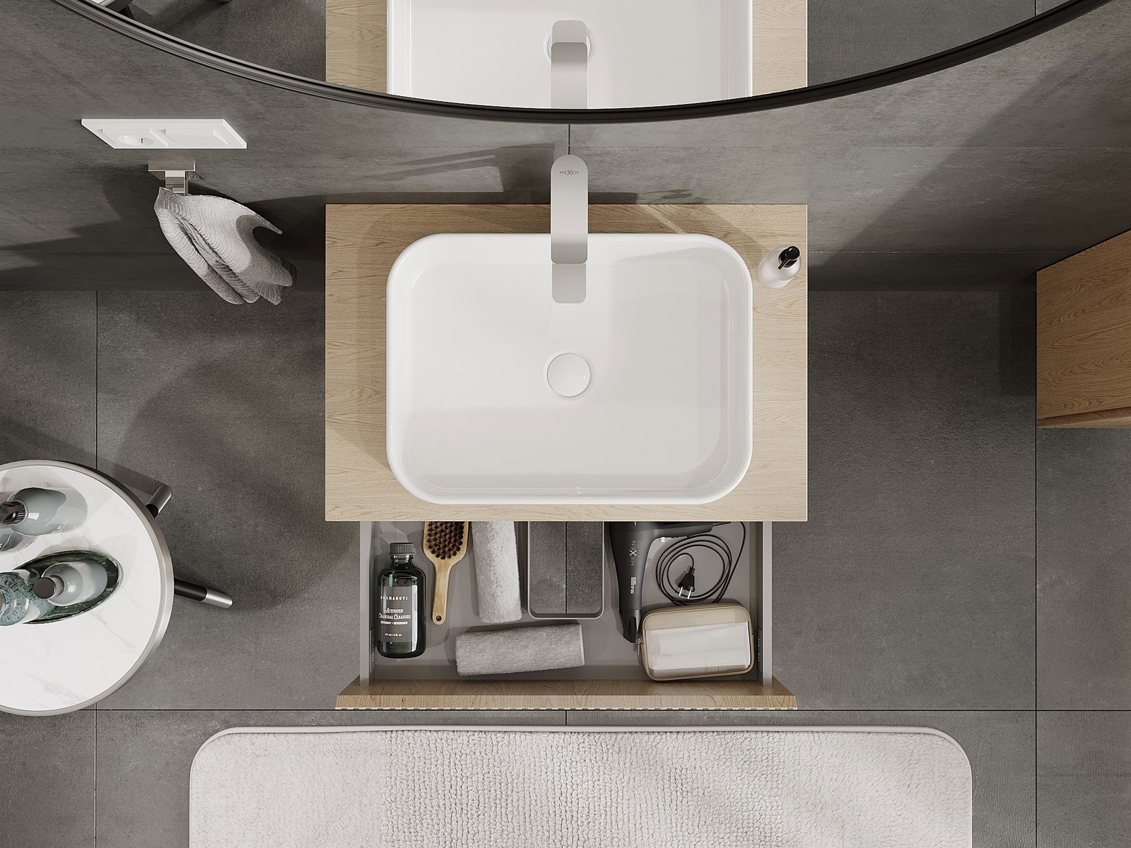 Mobilierul nostru modular pentru baie poate fi combinat în diverse configurații de culori, permițând personalizarea completă. Puteți alege atât aspectul, cât și funcțiile fiecărui element, ceea ce permite adaptarea mobilierului la preferințele dvs. stilistice și funcționale.
