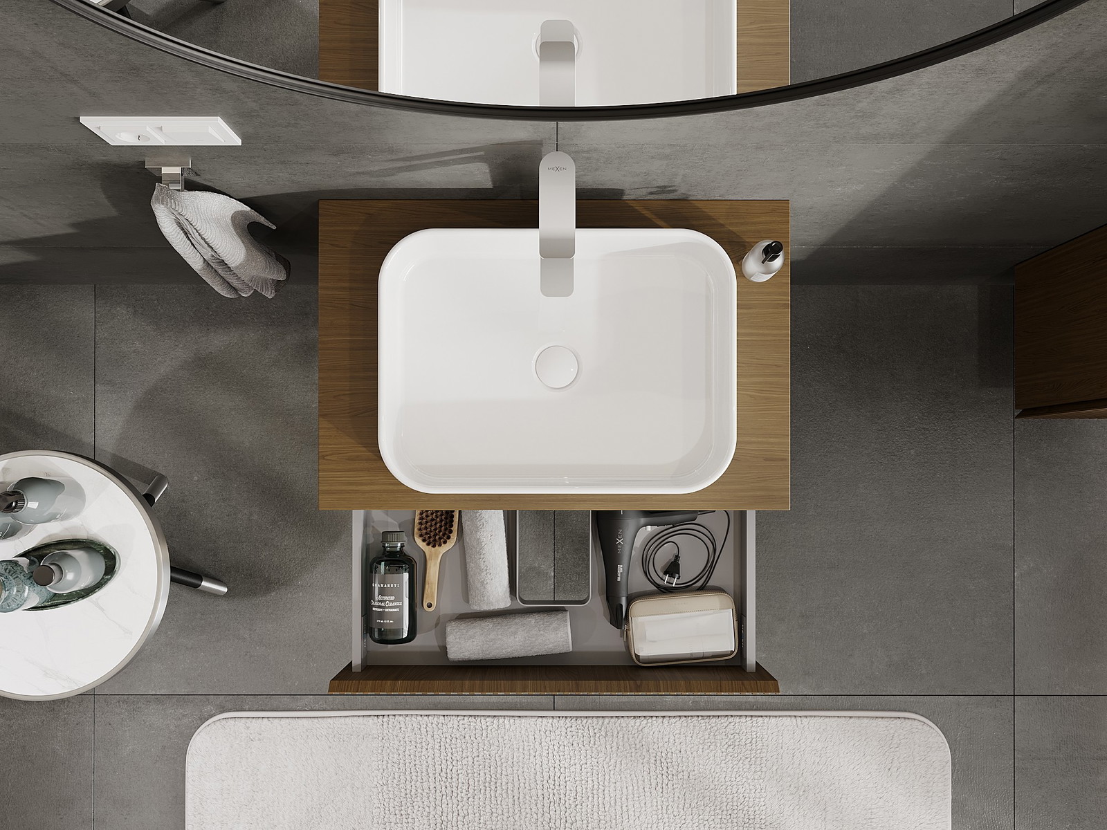 Mobilierul nostru modular pentru baie poate fi combinat în diverse configurații de culori, permițând personalizarea completă. Puteți alege atât aspectul, cât și funcțiile fiecărui element, ceea ce permite adaptarea mobilierului la preferințele dvs. stilistice și funcționale.