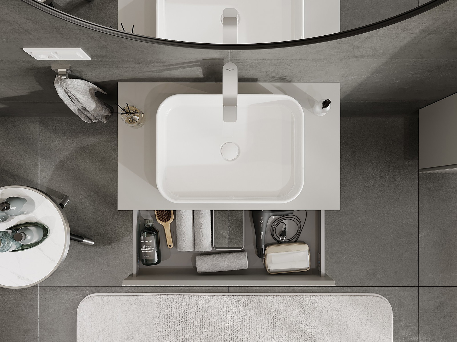 Mobilierul nostru modular pentru baie poate fi combinat în diverse configurații de culori, permițând personalizarea completă. Puteți alege atât aspectul, cât și funcțiile fiecărui element, ceea ce permite adaptarea mobilierului la preferințele dvs. stilistice și funcționale.