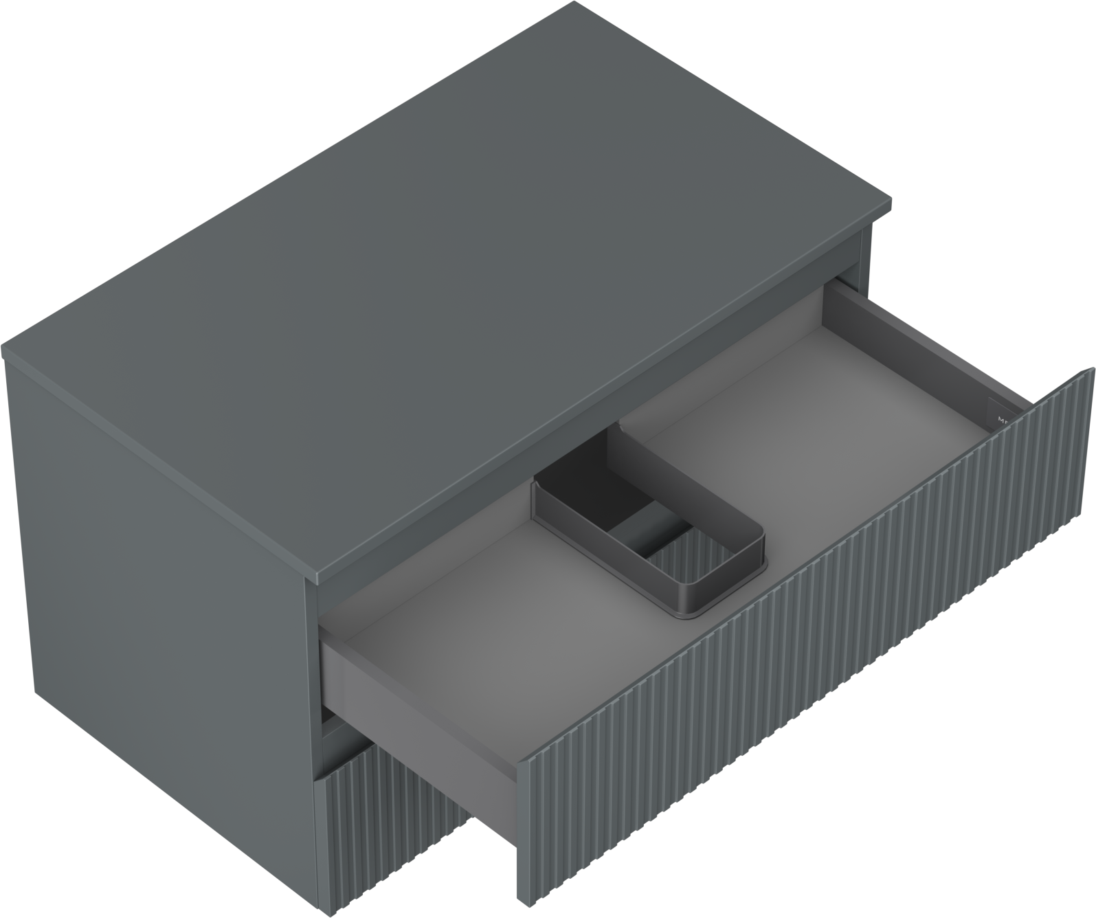 Decupajul în sertar este proiectat în așa fel încât să acomodeze sifonul, care este esențial în instalațiile de lavoare. Datorită acestui fapt, mobila poate fi montată complet funcțională, fără a fi necesară renunțarea la spațiul din sertar în favoarea instalației.