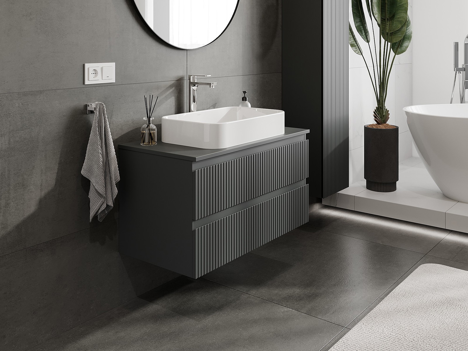 Mobilierul nostru modular pentru baie poate fi combinat în diverse configurații de culori, permițând personalizarea completă. Puteți alege atât aspectul, cât și funcțiile fiecărui element, ceea ce permite adaptarea mobilierului la preferințele dvs. stilistice și funcționale.