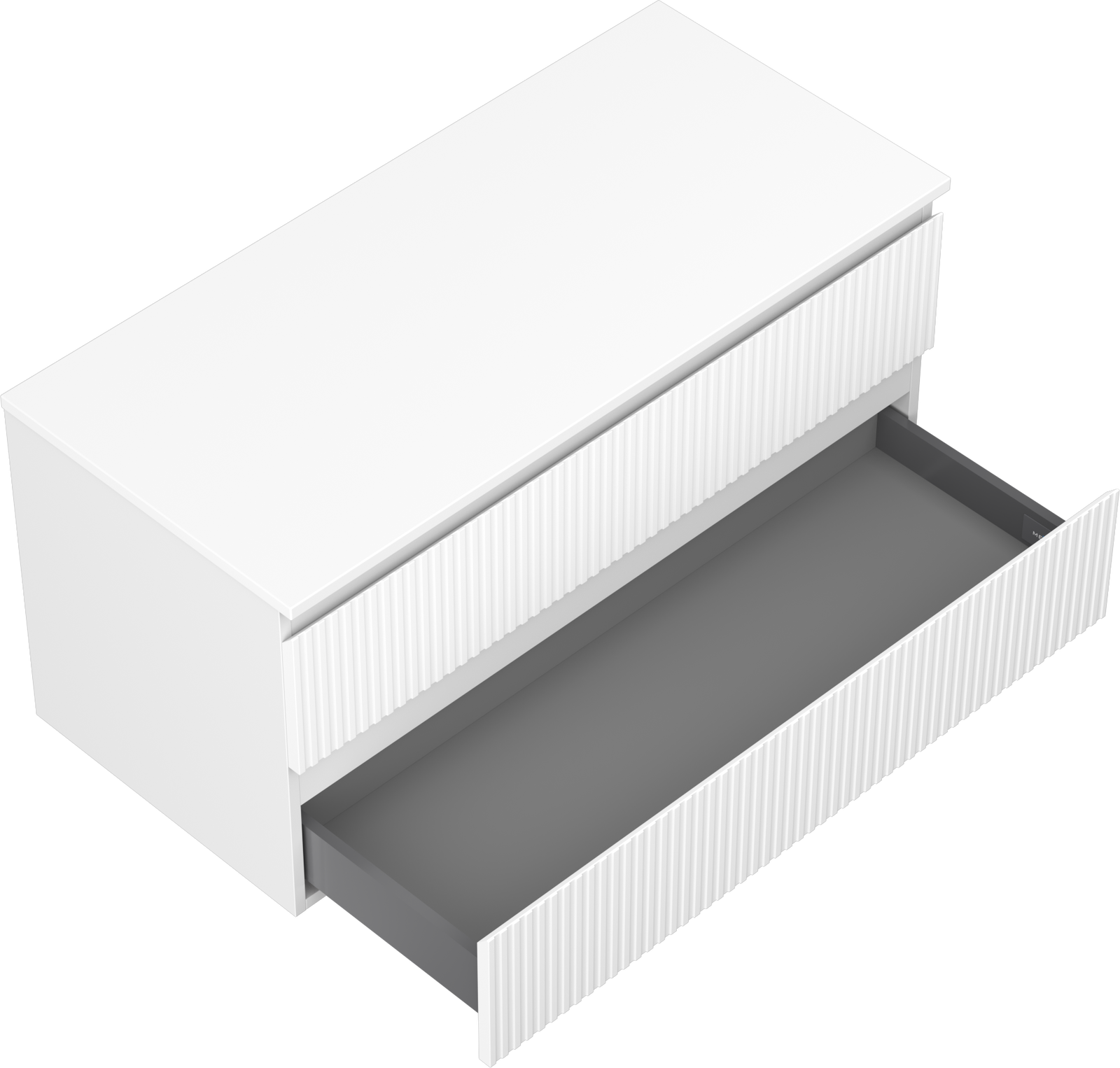 Decupajul în sertar este proiectat în așa fel încât să acomodeze sifonul, care este esențial în instalațiile de lavoare. Datorită acestui fapt, mobila poate fi montată complet funcțională, fără a fi necesară renunțarea la spațiul din sertar în favoarea instalației.