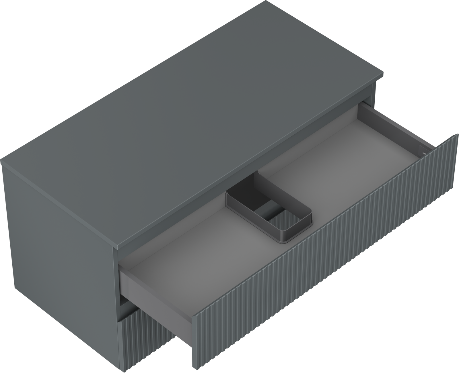 Decupajul în sertar este proiectat în așa fel încât să acomodeze sifonul, care este esențial în instalațiile de lavoare. Datorită acestui fapt, mobila poate fi montată complet funcțională, fără a fi necesară renunțarea la spațiul din sertar în favoarea instalației.