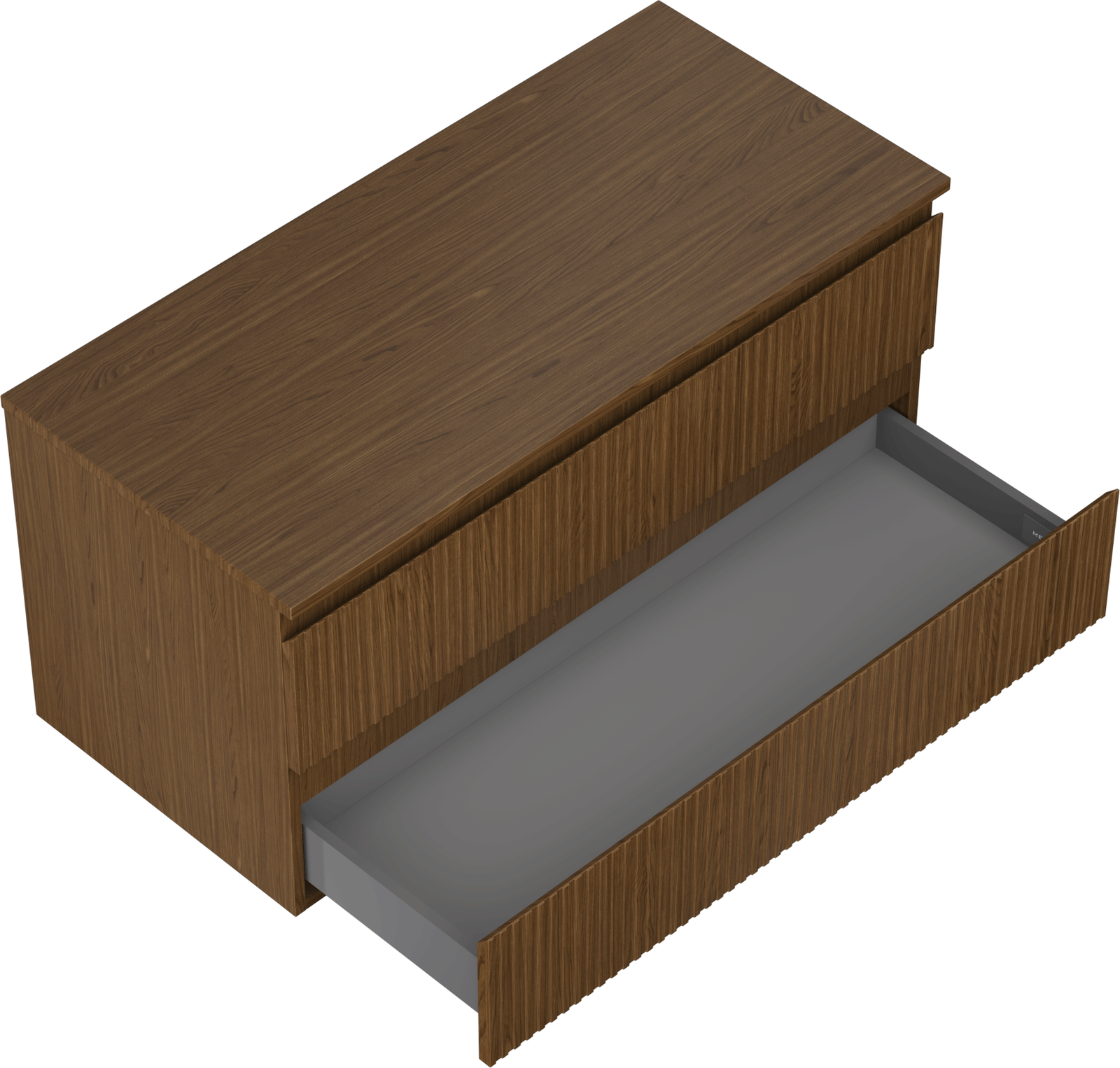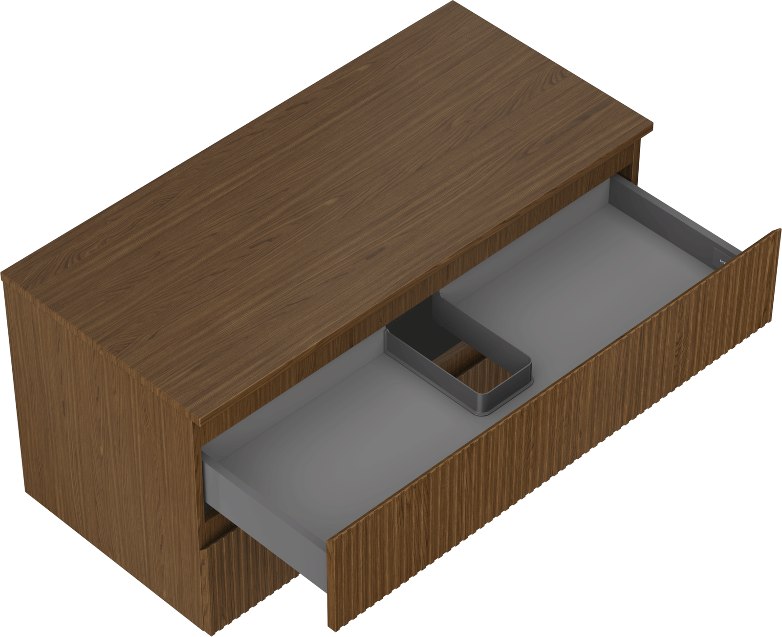Decupajul în sertar este proiectat în așa fel încât să acomodeze sifonul, care este esențial în instalațiile de lavoare. Datorită acestui fapt, mobila poate fi montată complet funcțională, fără a fi necesară renunțarea la spațiul din sertar în favoarea instalației.
