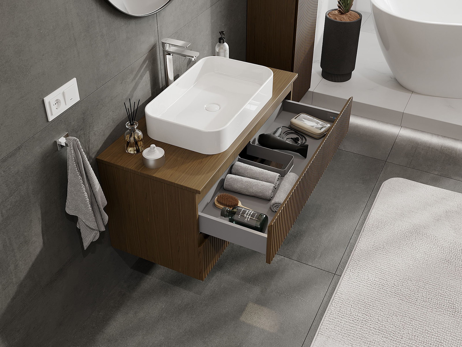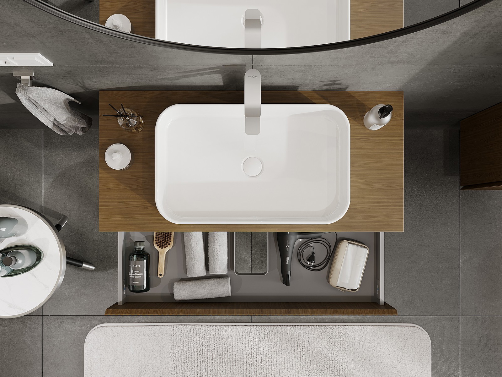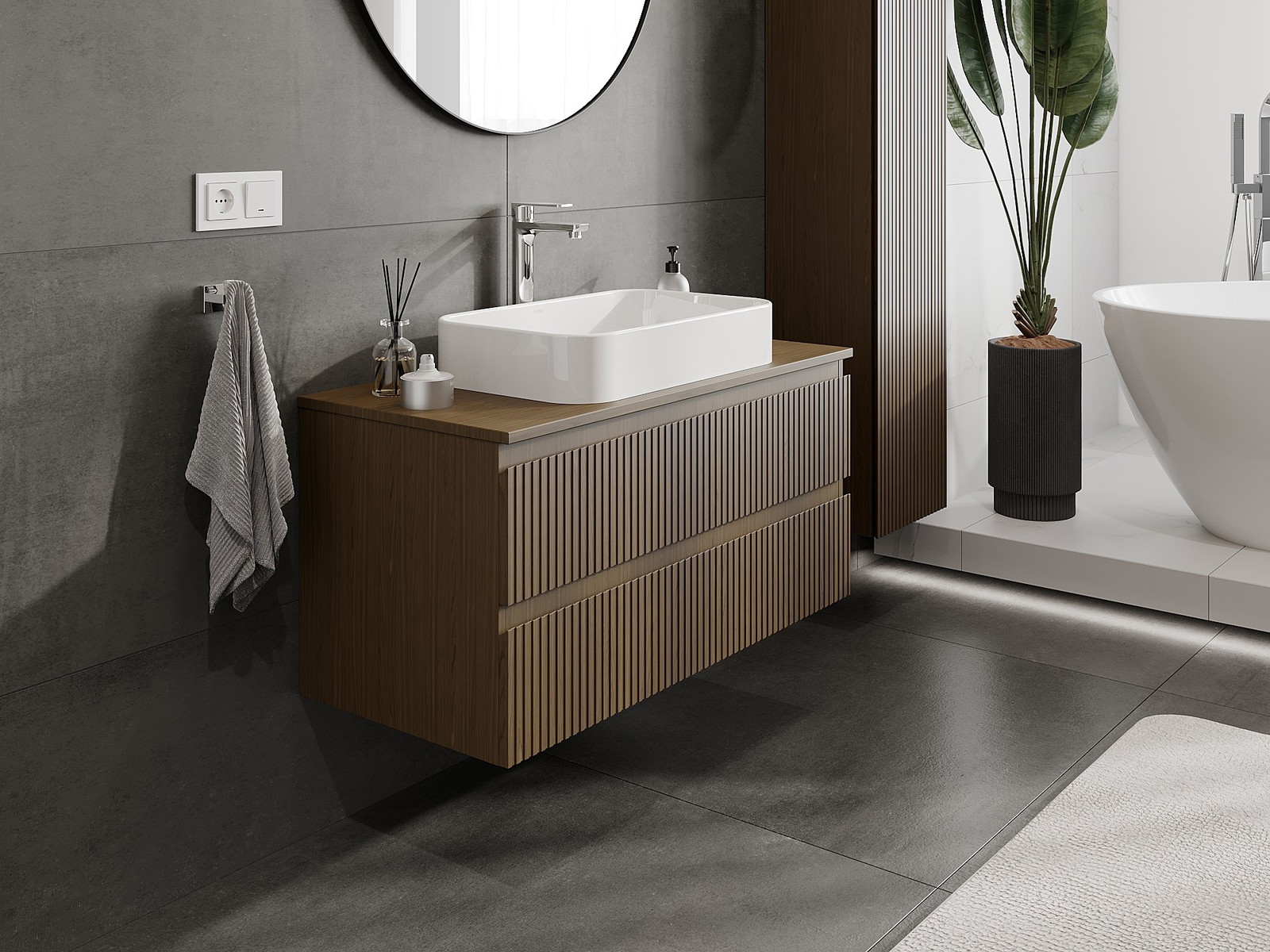 Mobilierul nostru modular pentru baie poate fi combinat în diverse configurații de culori, permițând personalizarea completă. Puteți alege atât aspectul, cât și funcțiile fiecărui element, ceea ce permite adaptarea mobilierului la preferințele dvs. stilistice și funcționale.