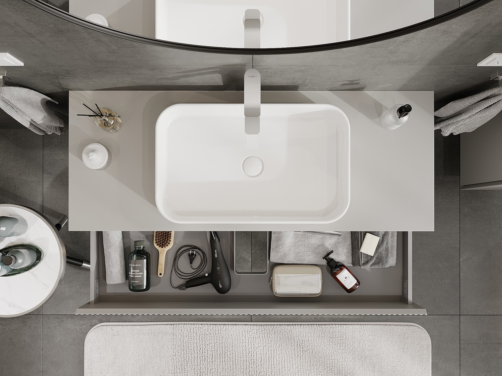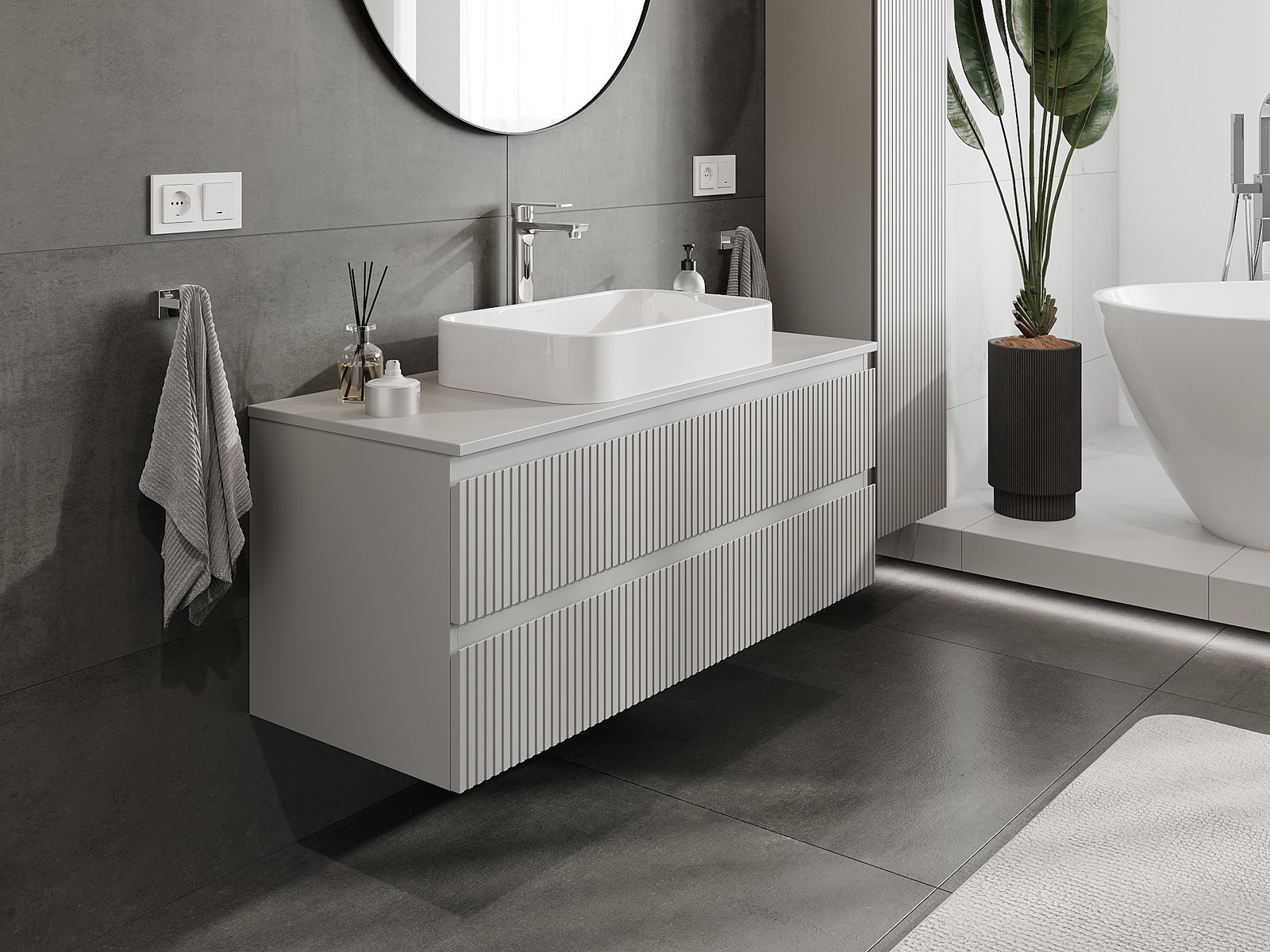 Mobilierul nostru modular pentru baie poate fi combinat în diverse configurații de culori, permițând personalizarea completă. Puteți alege atât aspectul, cât și funcțiile fiecărui element, ceea ce permite adaptarea mobilierului la preferințele dvs. stilistice și funcționale.
