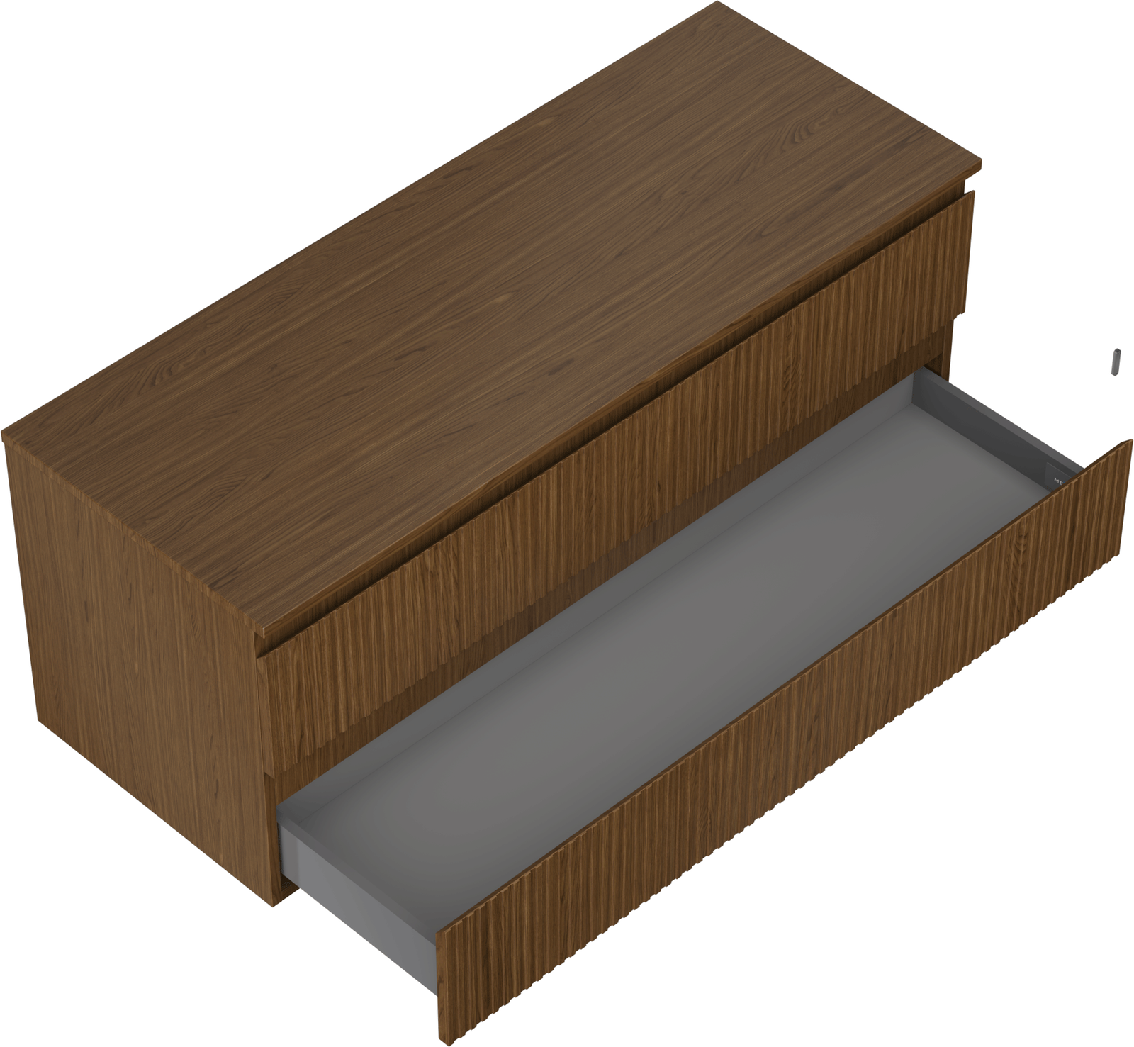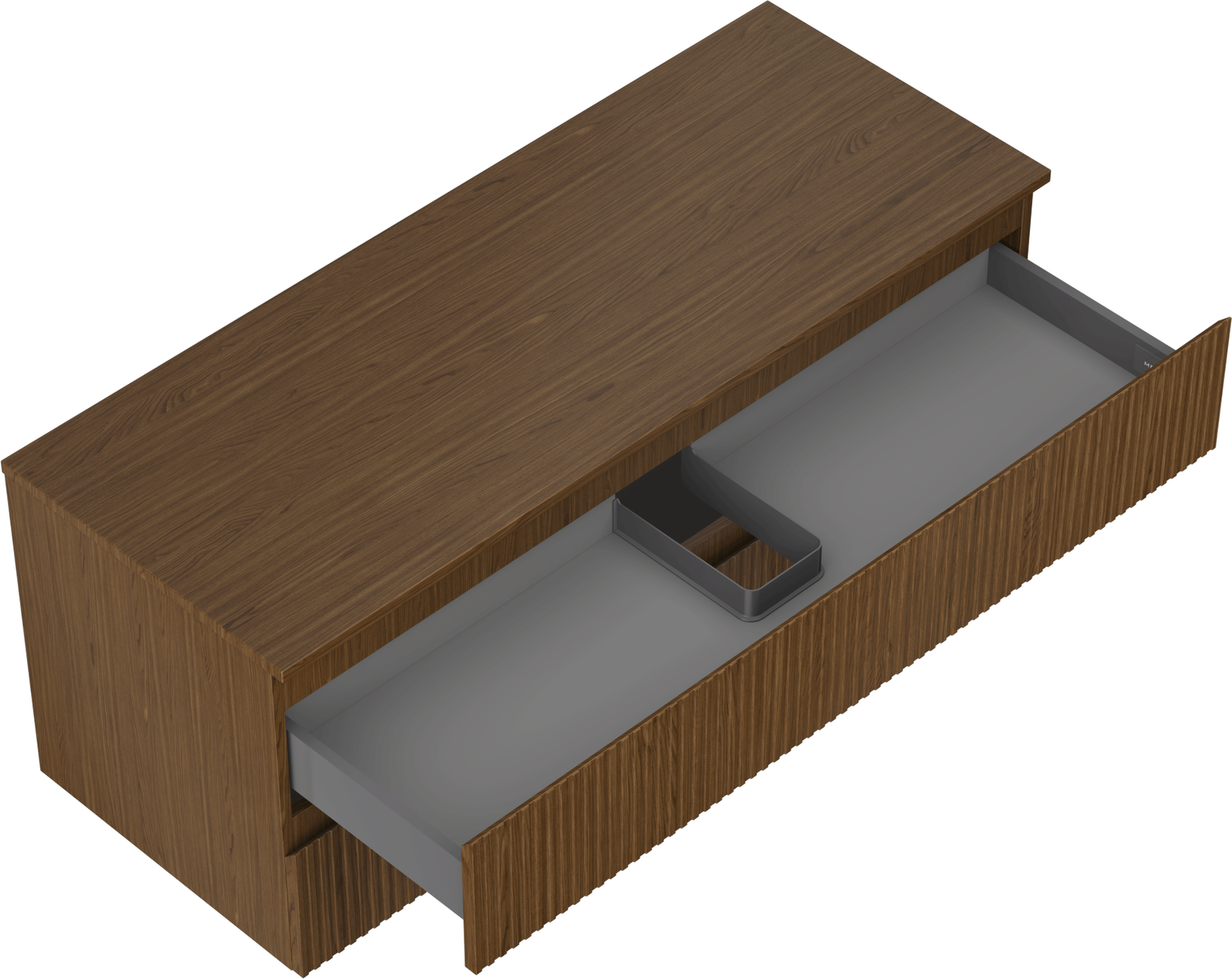 Decupajul în sertar este proiectat în așa fel încât să acomodeze sifonul, care este esențial în instalațiile de lavoare. Datorită acestui fapt, mobila poate fi montată complet funcțională, fără a fi necesară renunțarea la spațiul din sertar în favoarea instalației.