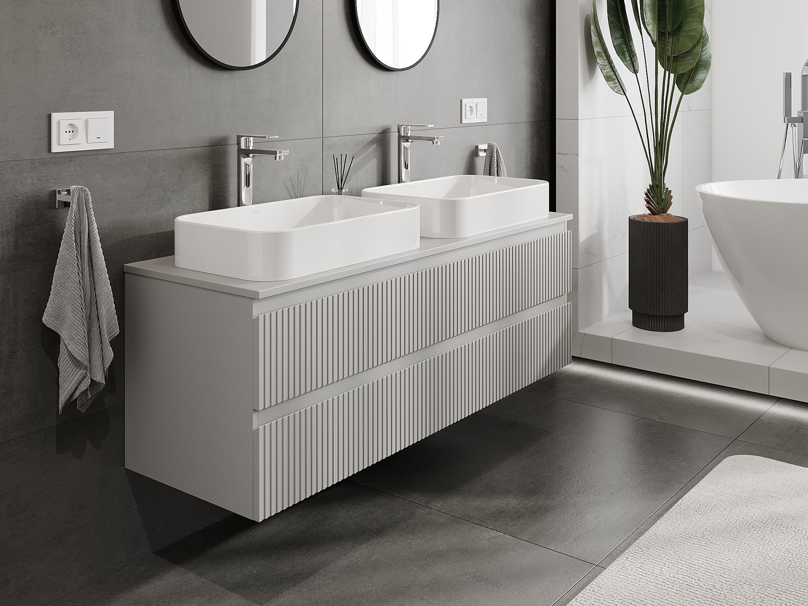 Mobilierul nostru modular pentru baie poate fi combinat în diverse configurații de culori, permițând personalizarea completă. Puteți alege atât aspectul, cât și funcțiile fiecărui element, ceea ce permite adaptarea mobilierului la preferințele dvs. stilistice și funcționale.