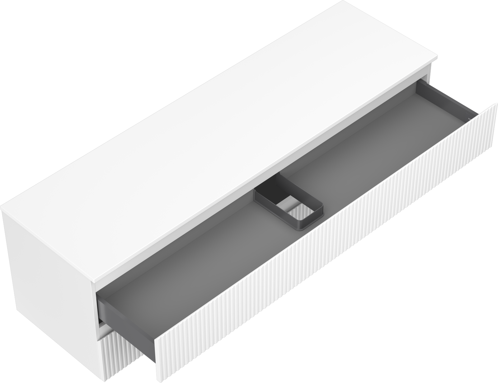 Decupajul în sertar este proiectat în așa fel încât să acomodeze sifonul, care este esențial în instalațiile de lavoare. Datorită acestui fapt, mobila poate fi montată complet funcțională, fără a fi necesară renunțarea la spațiul din sertar în favoarea instalației.