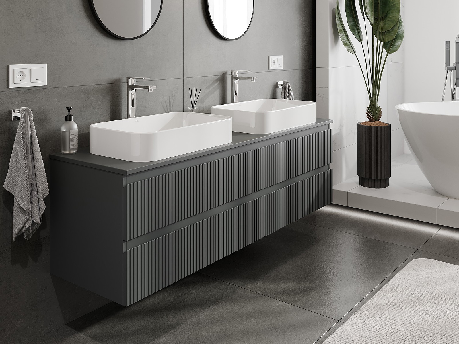 Mobilierul nostru modular pentru baie poate fi combinat în diverse configurații de culori, permițând personalizarea completă. Puteți alege atât aspectul, cât și funcțiile fiecărui element, ceea ce permite adaptarea mobilierului la preferințele dvs. stilistice și funcționale.