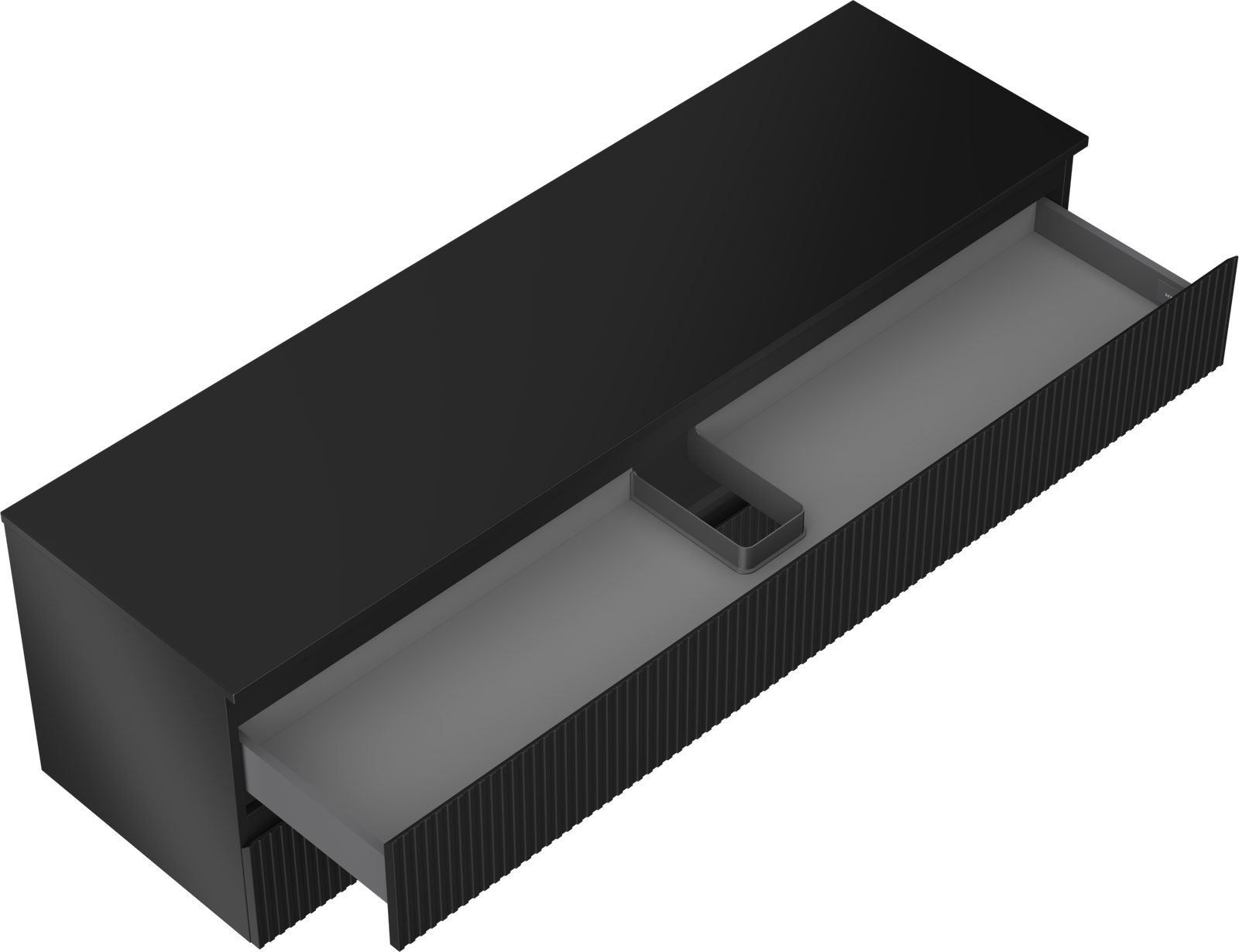 Decupajul în sertar este proiectat în așa fel încât să acomodeze sifonul, care este esențial în instalațiile de lavoare. Datorită acestui fapt, mobila poate fi montată complet funcțională, fără a fi necesară renunțarea la spațiul din sertar în favoarea instalației.