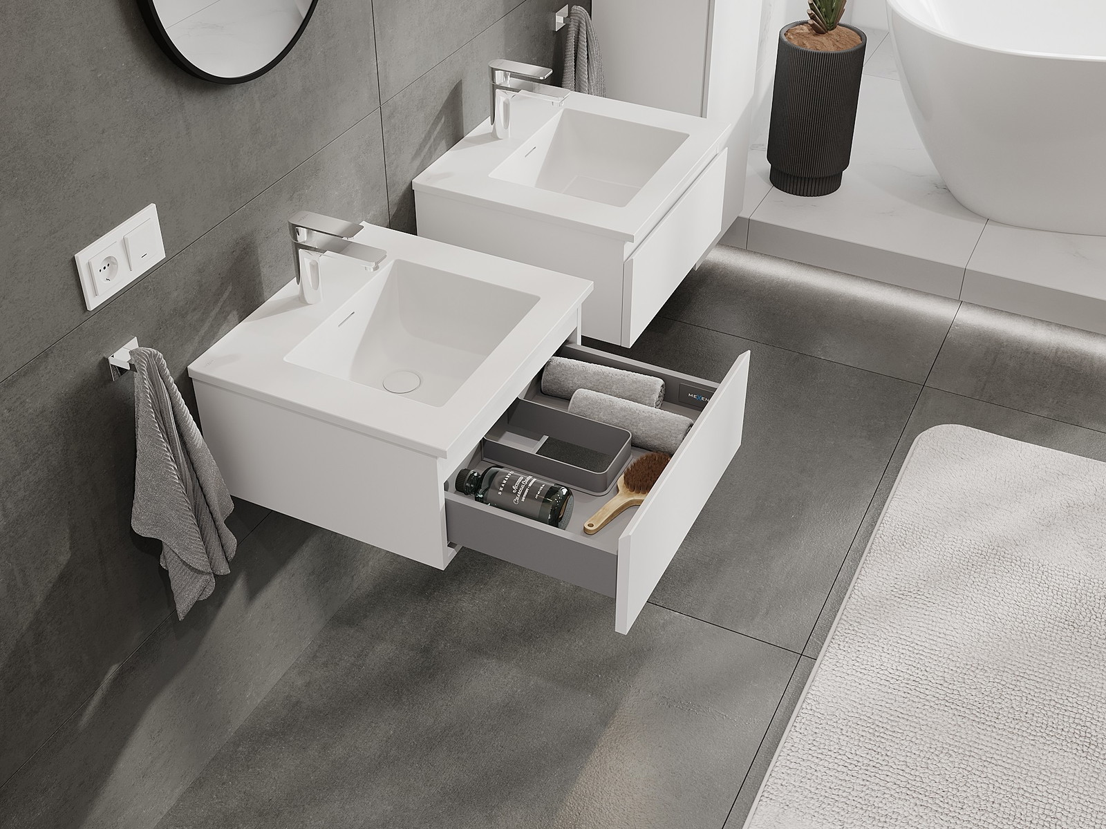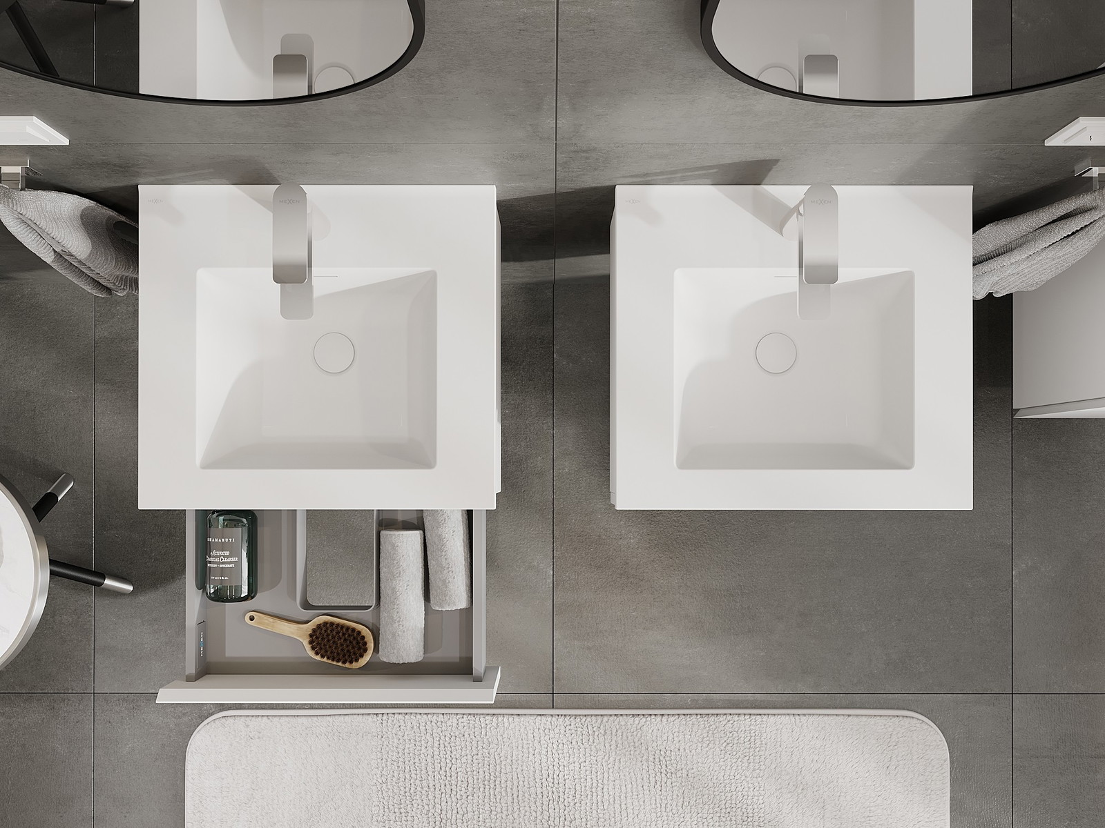 Mobilierul nostru modular pentru baie poate fi combinat în diverse configurații de culori, permițând personalizarea completă. Puteți alege atât aspectul, cât și funcțiile fiecărui element, ceea ce permite adaptarea mobilierului la preferințele dvs. stilistice și funcționale.
