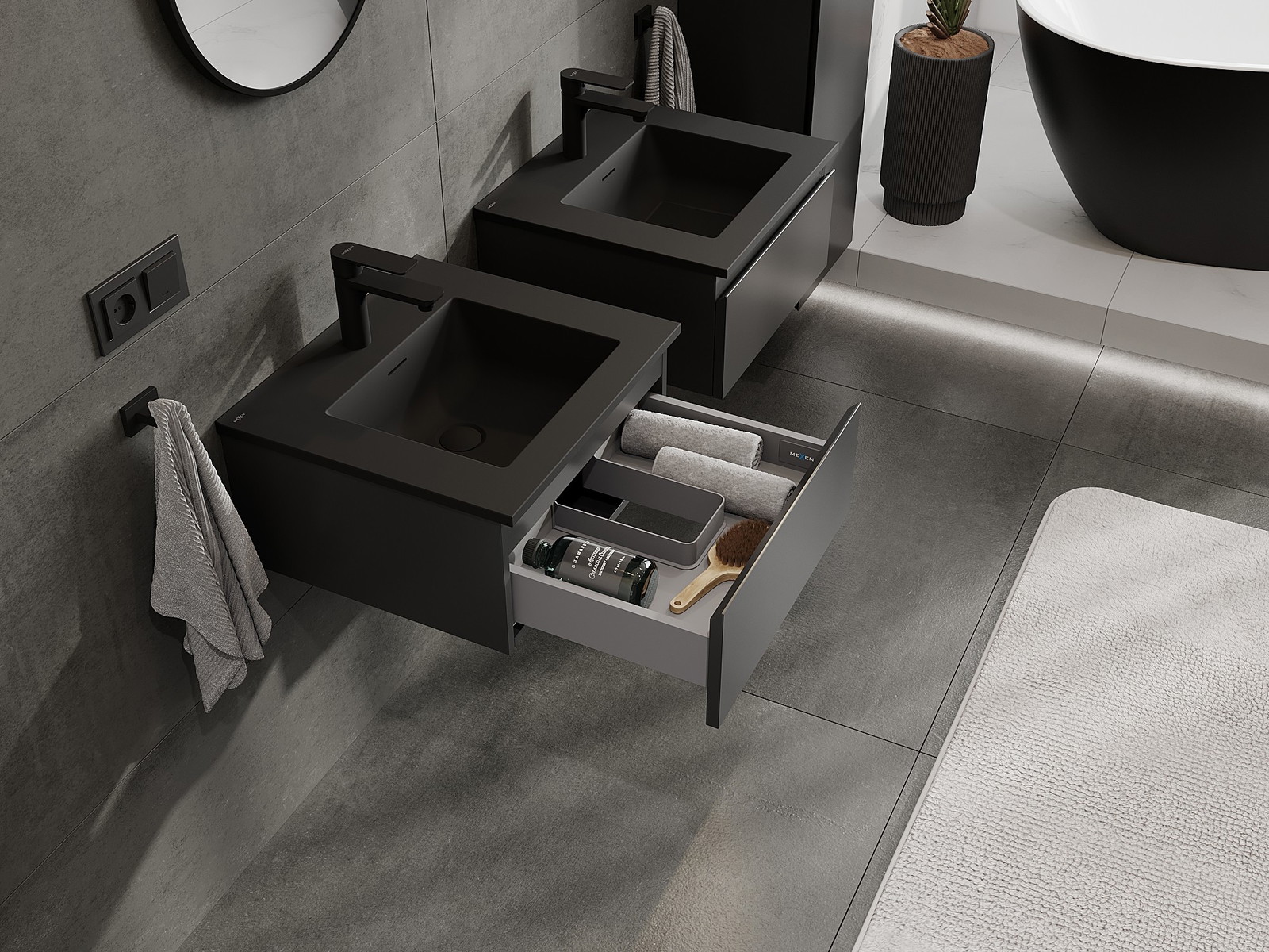 Mobilierul nostru modular pentru baie poate fi combinat în diverse configurații de culori, permițând personalizarea completă. Puteți alege atât aspectul, cât și funcțiile fiecărui element, ceea ce permite adaptarea mobilierului la preferințele dvs. stilistice și funcționale.