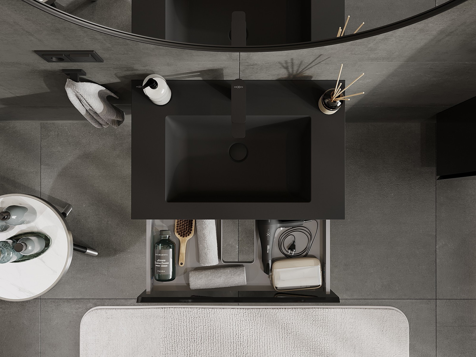 Mexen Orio dulap baie 70 cm cu chiuvetă Otis, 1 sertar, negru lucios/negru mat - 91A10-07023-1-BF70-W18M71