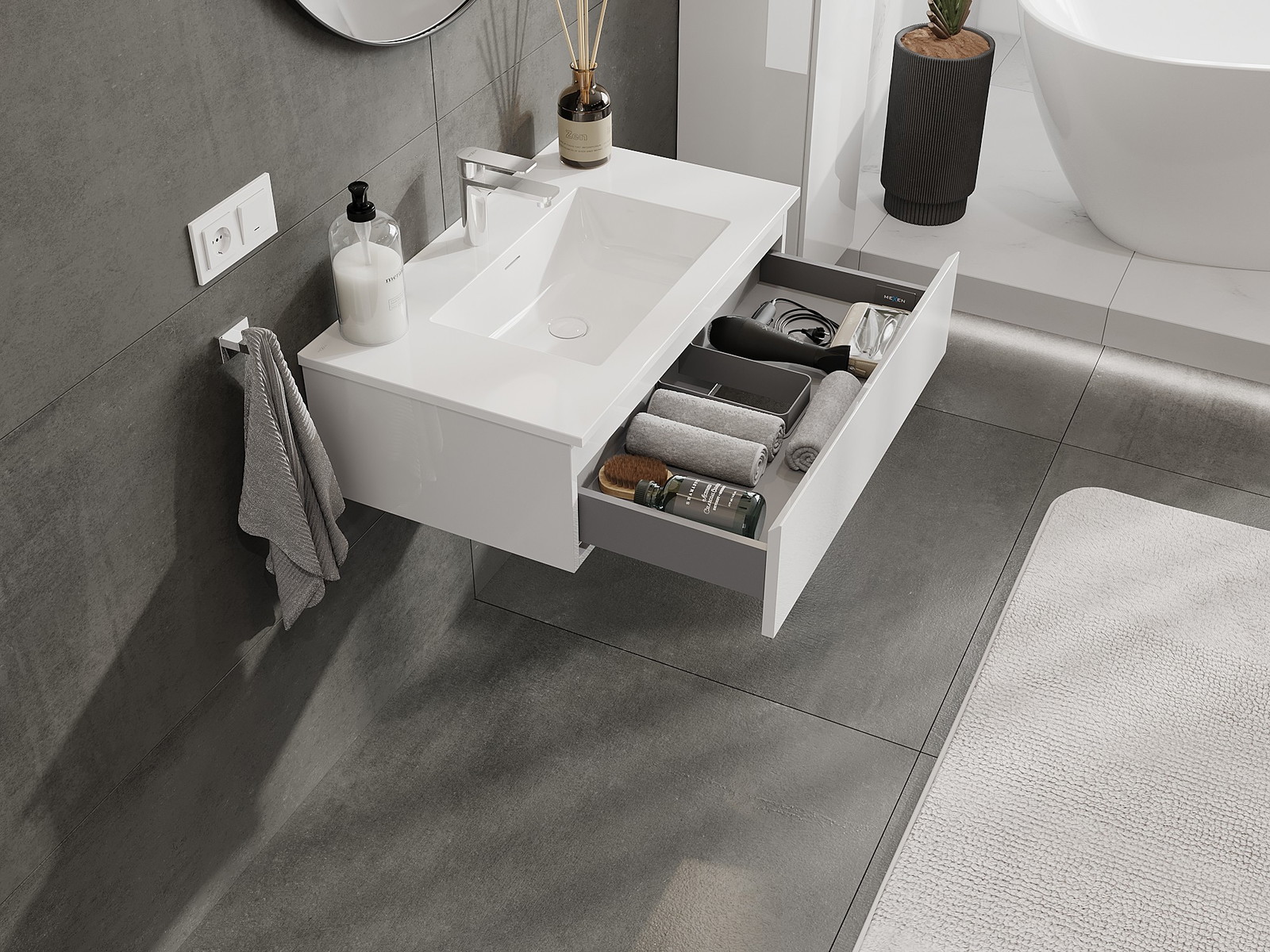 Mobilierul nostru modular pentru baie poate fi combinat în diverse configurații de culori, permițând personalizarea completă. Puteți alege atât aspectul, cât și funcțiile fiecărui element, ceea ce permite adaptarea mobilierului la preferințele dvs. stilistice și funcționale.