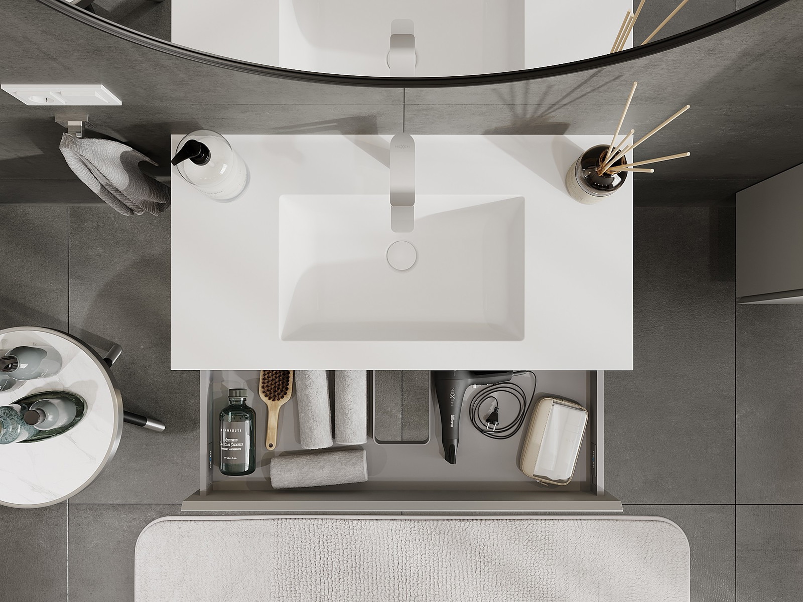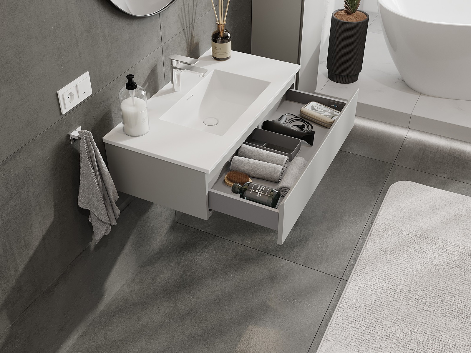 Mexen Orio dulap baie 90 cm cu chiuvetă Otis, 1 sertar, gri mat/alb mat - 91A10-09023-1-BF62-W18M01