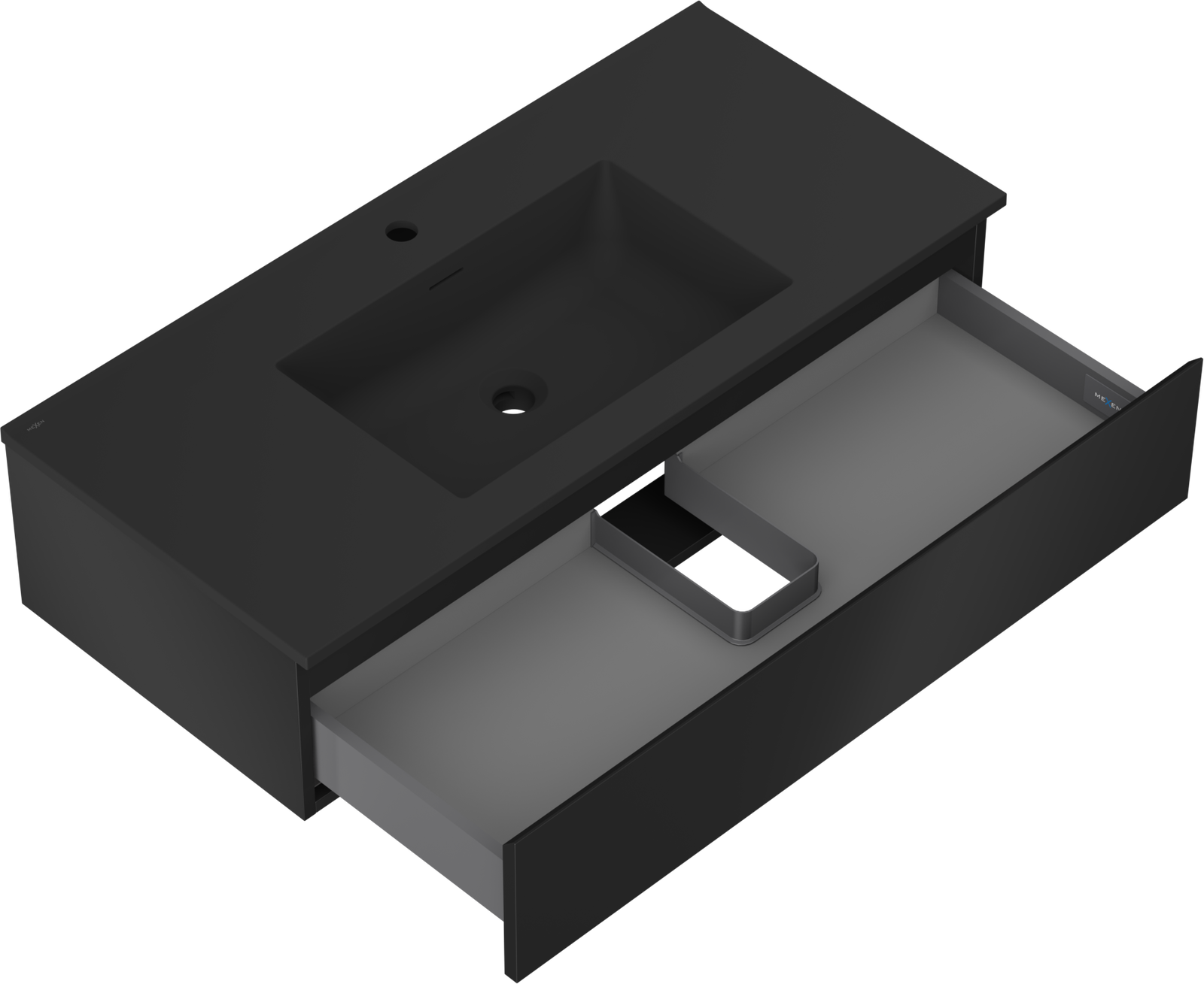 Decupajul în sertar este proiectat în așa fel încât să acomodeze sifonul, care este esențial în instalațiile de lavoare. Datorită acestui fapt, mobila poate fi montată complet funcțională, fără a fi necesară renunțarea la spațiul din sertar în favoarea instalației.