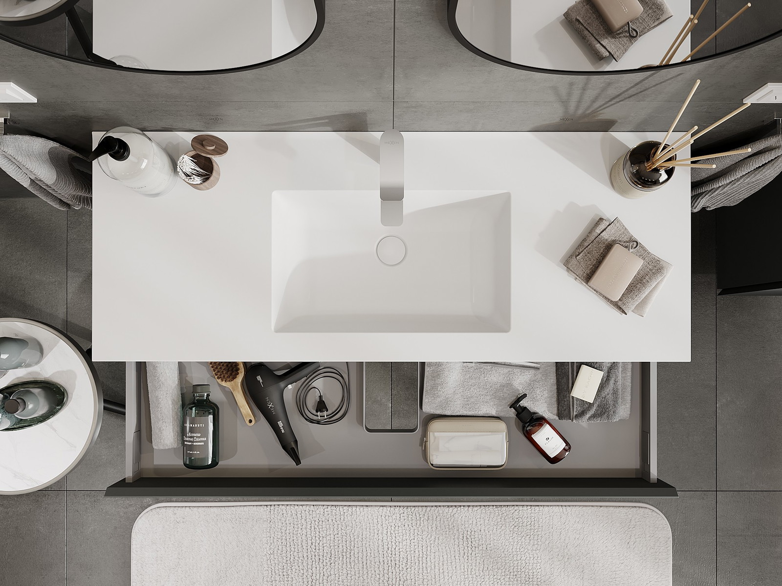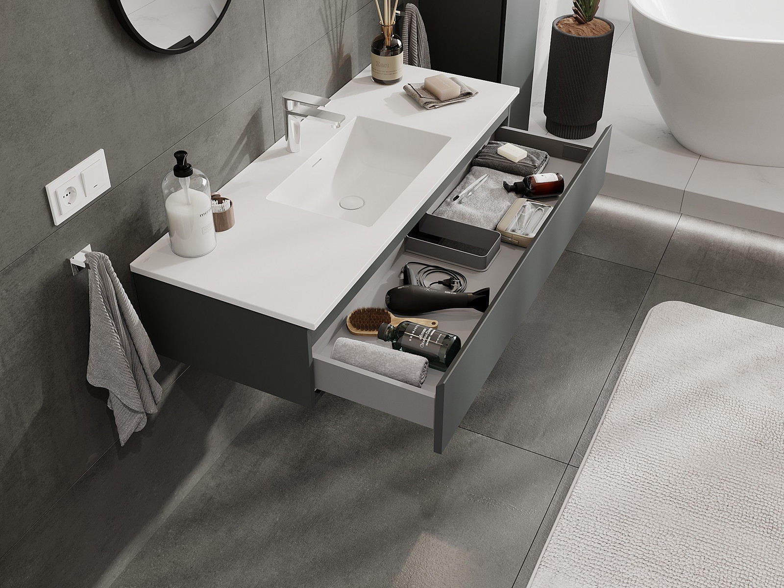 Mobilierul nostru modular pentru baie poate fi combinat în diverse configurații de culori, permițând personalizarea completă. Puteți alege atât aspectul, cât și funcțiile fiecărui element, ceea ce permite adaptarea mobilierului la preferințele dvs. stilistice și funcționale.