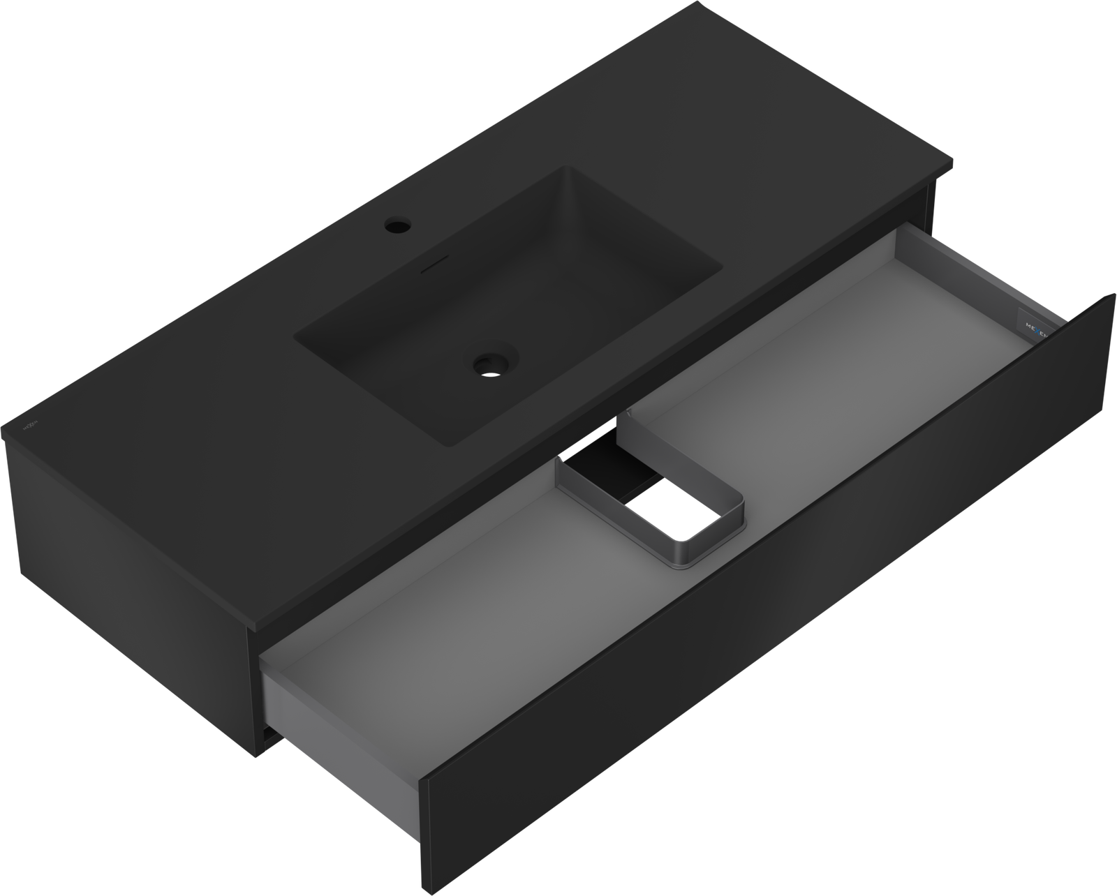 Decupajul în sertar este proiectat în așa fel încât să acomodeze sifonul, care este esențial în instalațiile de lavoare. Datorită acestui fapt, mobila poate fi montată complet funcțională, fără a fi necesară renunțarea la spațiul din sertar în favoarea instalației.