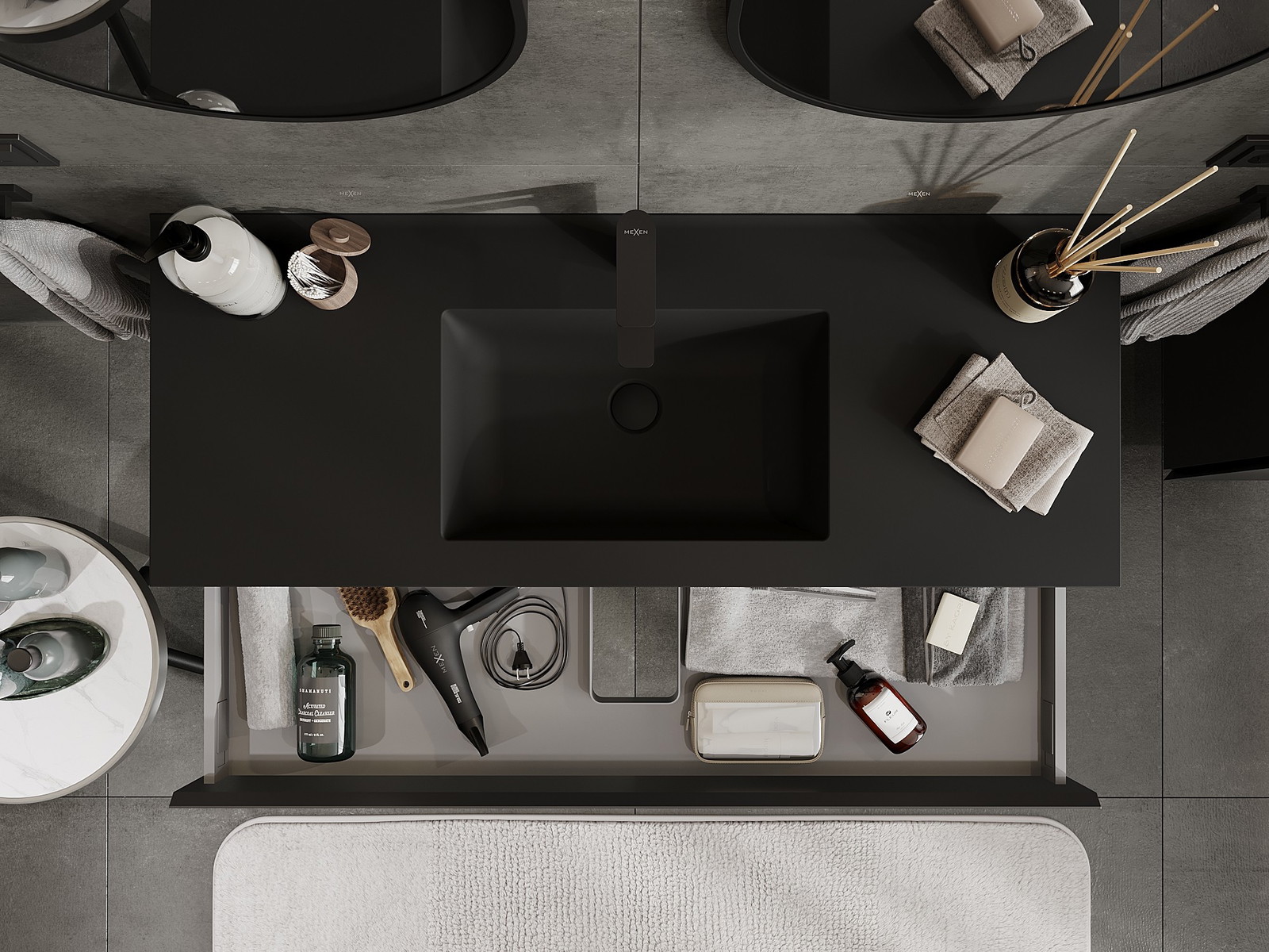 Mexen Orio dulap de baie 120 cm cu lavoar Otis, 1 sertar, negru mat - 91A10-12023-1-BF71-W18M71