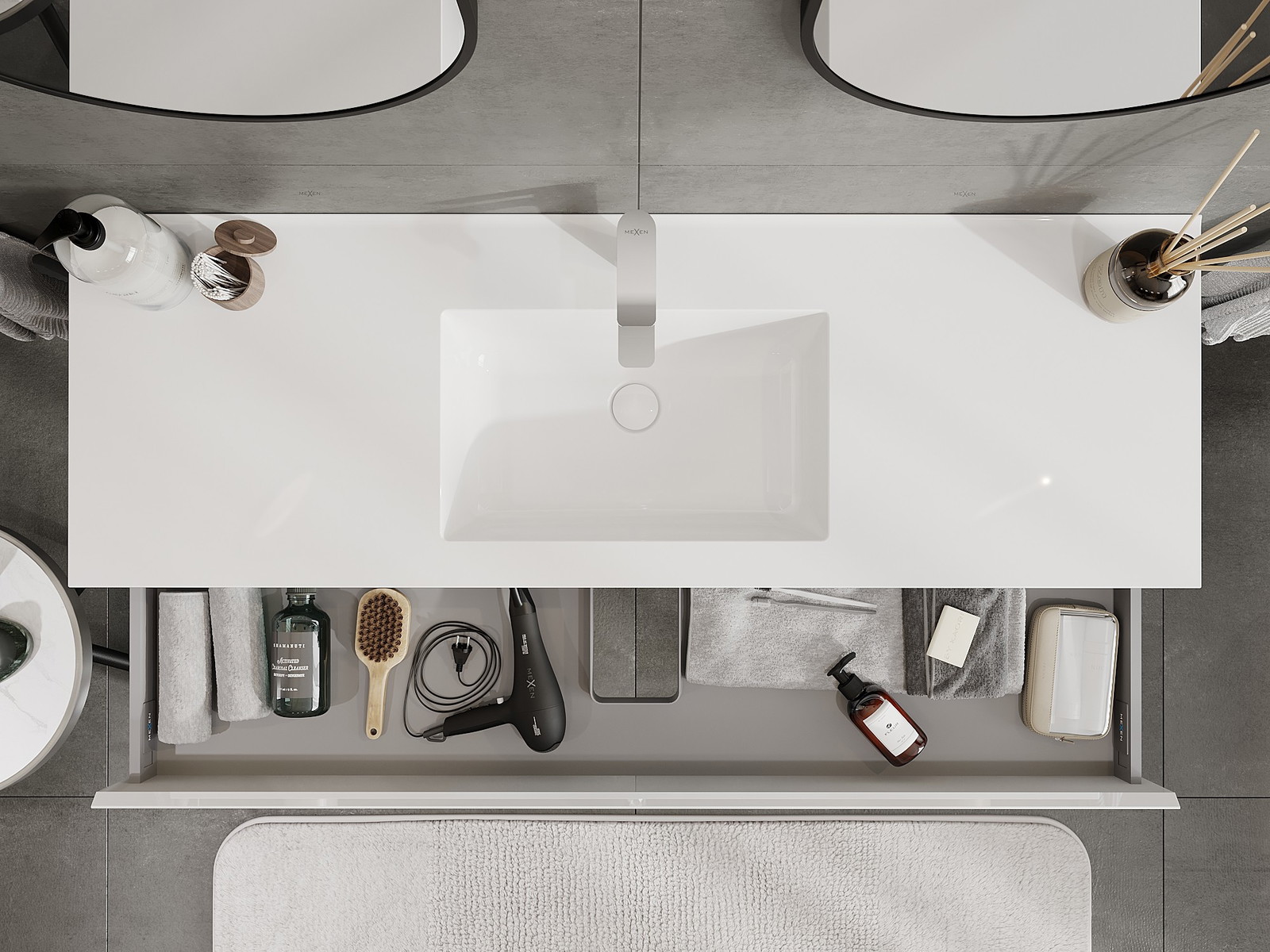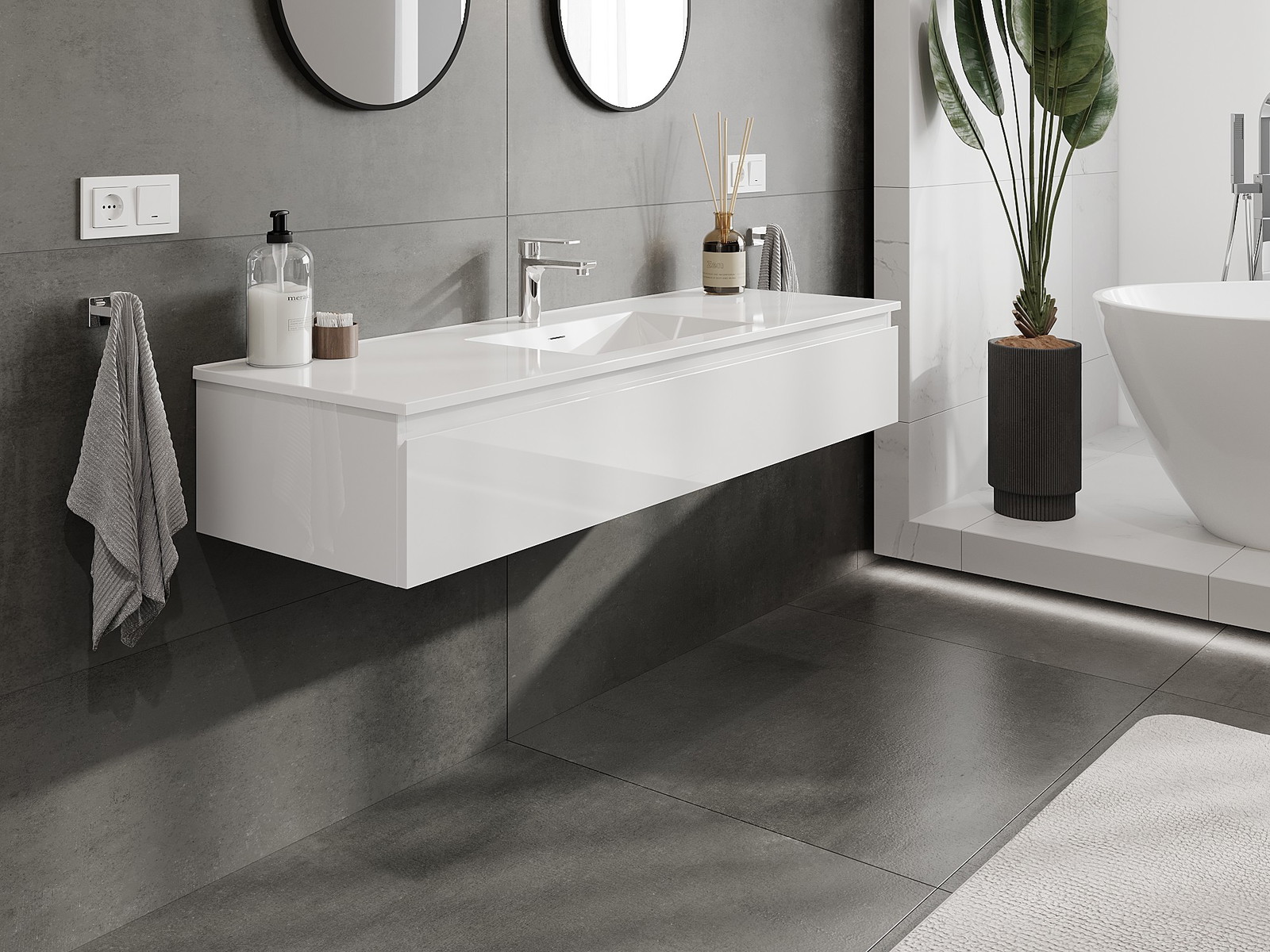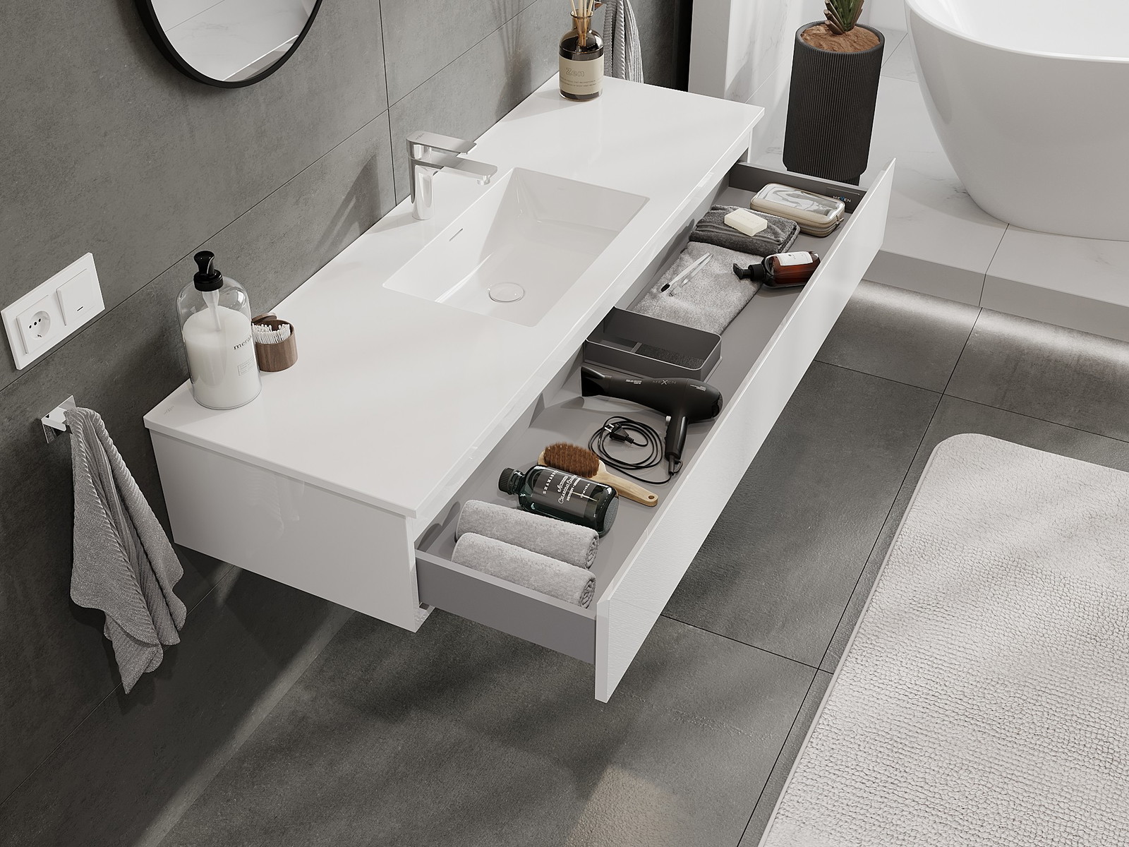 Mobilierul nostru modular pentru baie poate fi combinat în diverse configurații de culori, permițând personalizarea completă. Puteți alege atât aspectul, cât și funcțiile fiecărui element, ceea ce permite adaptarea mobilierului la preferințele dvs. stilistice și funcționale.
