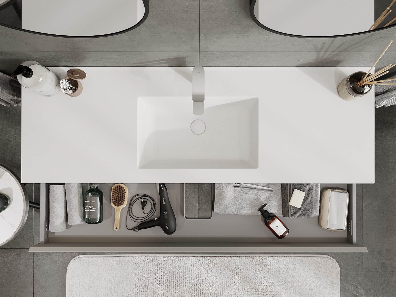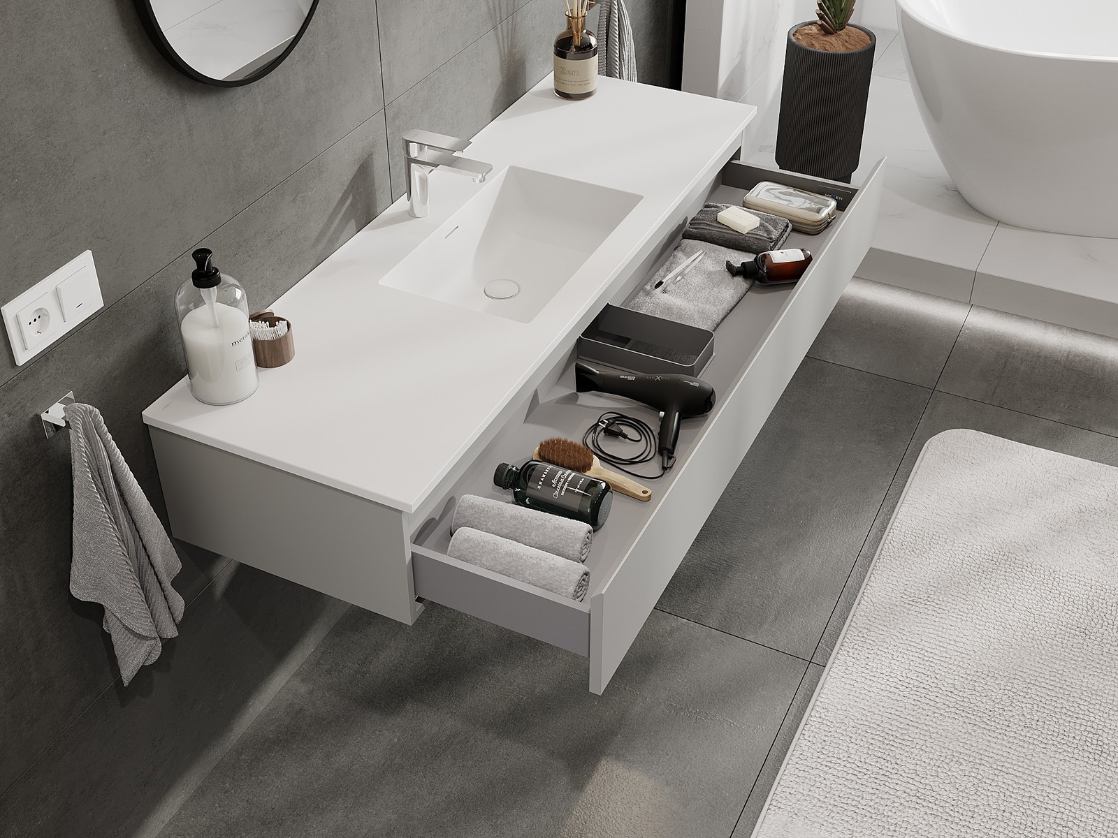 Mobilierul nostru modular pentru baie poate fi combinat în diverse configurații de culori, permițând personalizarea completă. Puteți alege atât aspectul, cât și funcțiile fiecărui element, ceea ce permite adaptarea mobilierului la preferințele dvs. stilistice și funcționale.