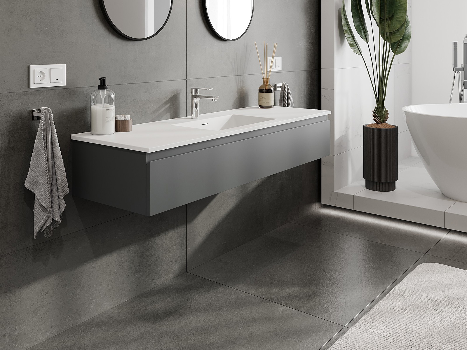 Mexen Orio dulap baie 140 cm cu lavoar Otis, 1 sertar, grafit mat/alb mat - 91A10-14023-1-BF66-W18M01