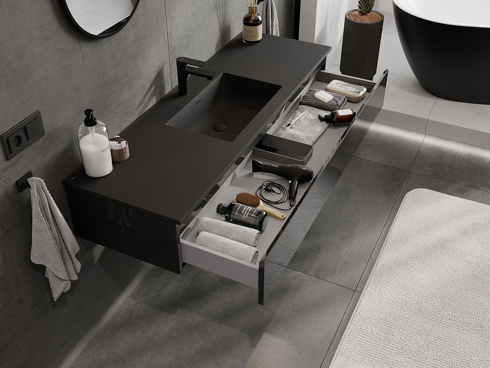 Mobilierul nostru modular pentru baie poate fi combinat în diverse configurații de culori, permițând personalizarea completă. Puteți alege atât aspectul, cât și funcțiile fiecărui element, ceea ce permite adaptarea mobilierului la preferințele dvs. stilistice și funcționale.