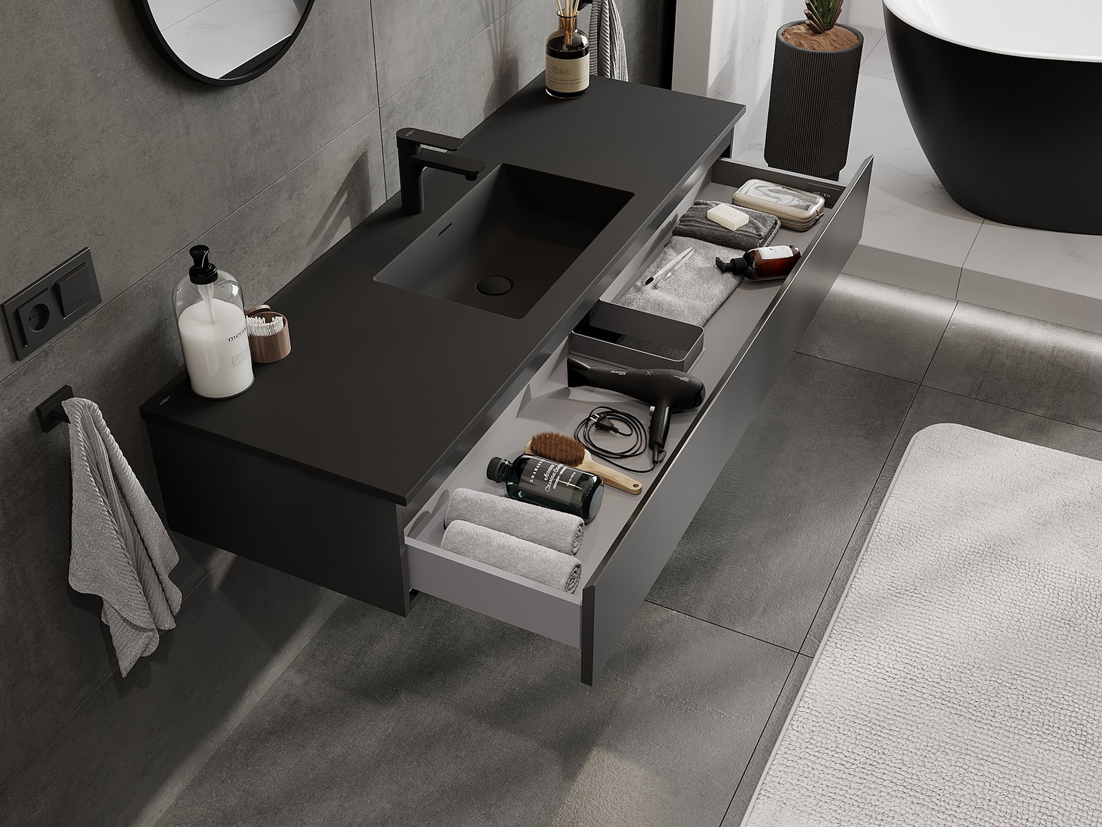 Mexen Orio dulap baie 140 cm cu chiuvetă Otis, 1 sertar, negru mat - 91A10-14023-1-BF71-W18M71