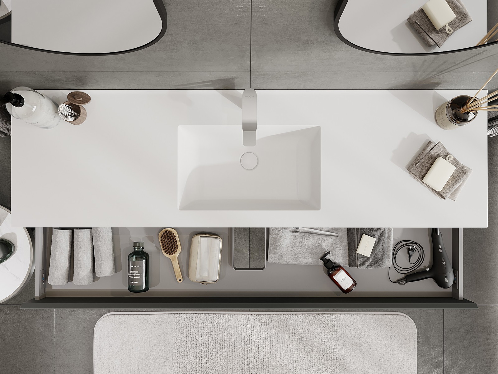 Mexen Orio dulap baie 160 cm cu lavoar Otis, 1 sertar, grafit mat/alb mat - 91A10-16023-1-BF66-W18M01