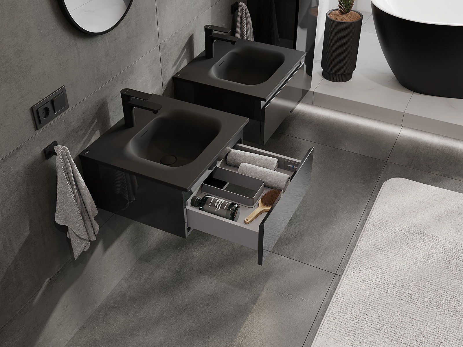 Mobilierul nostru modular pentru baie poate fi combinat în diverse configurații de culori, permițând personalizarea completă. Puteți alege atât aspectul, cât și funcțiile fiecărui element, ceea ce permite adaptarea mobilierului la preferințele dvs. stilistice și funcționale.