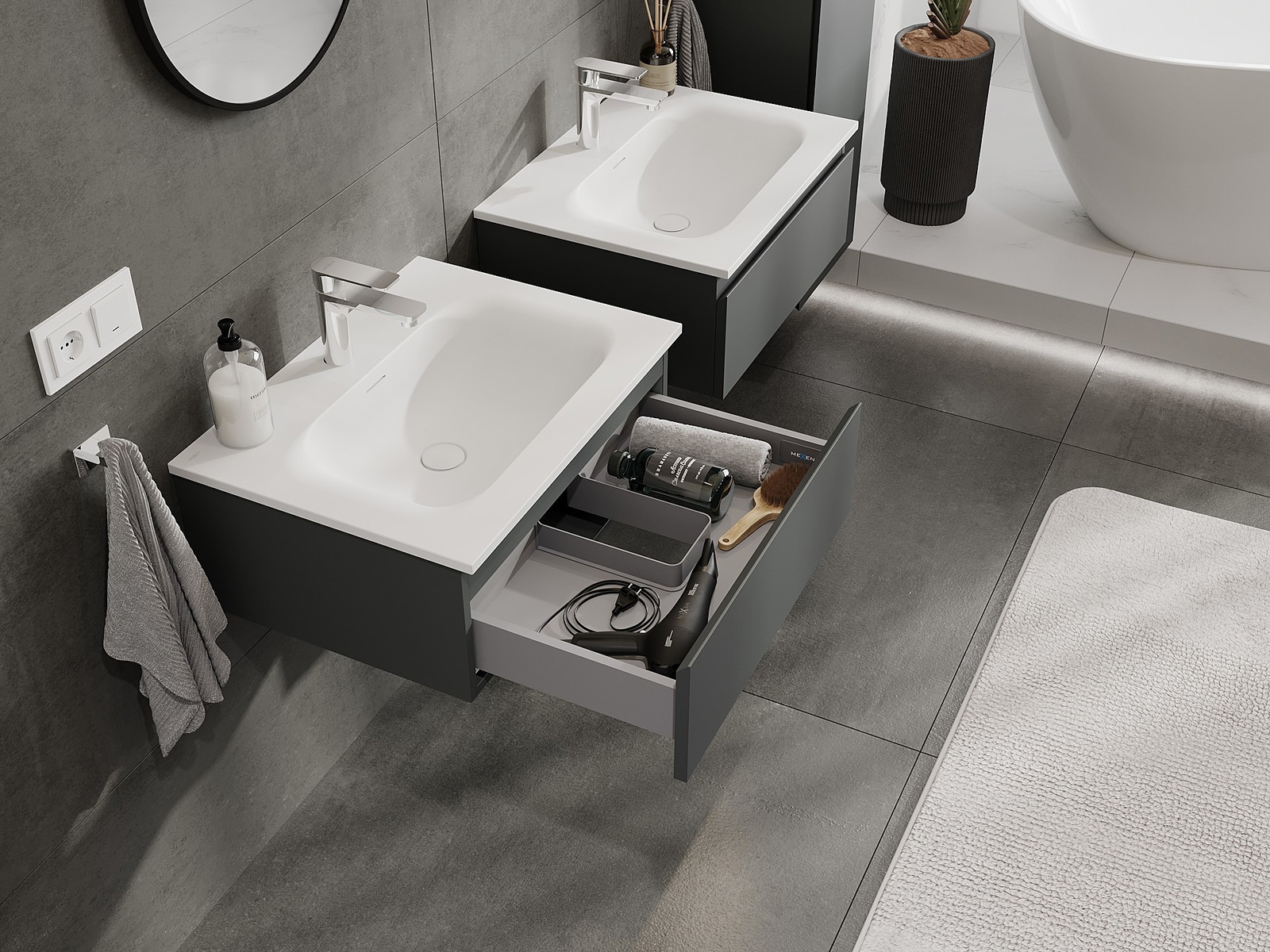 Mexen Orio dulap baie 60 cm cu lavoar Vela, 1 sertar, grafit mat/alb mat - 91A10-06023-1-BF66-W23M01