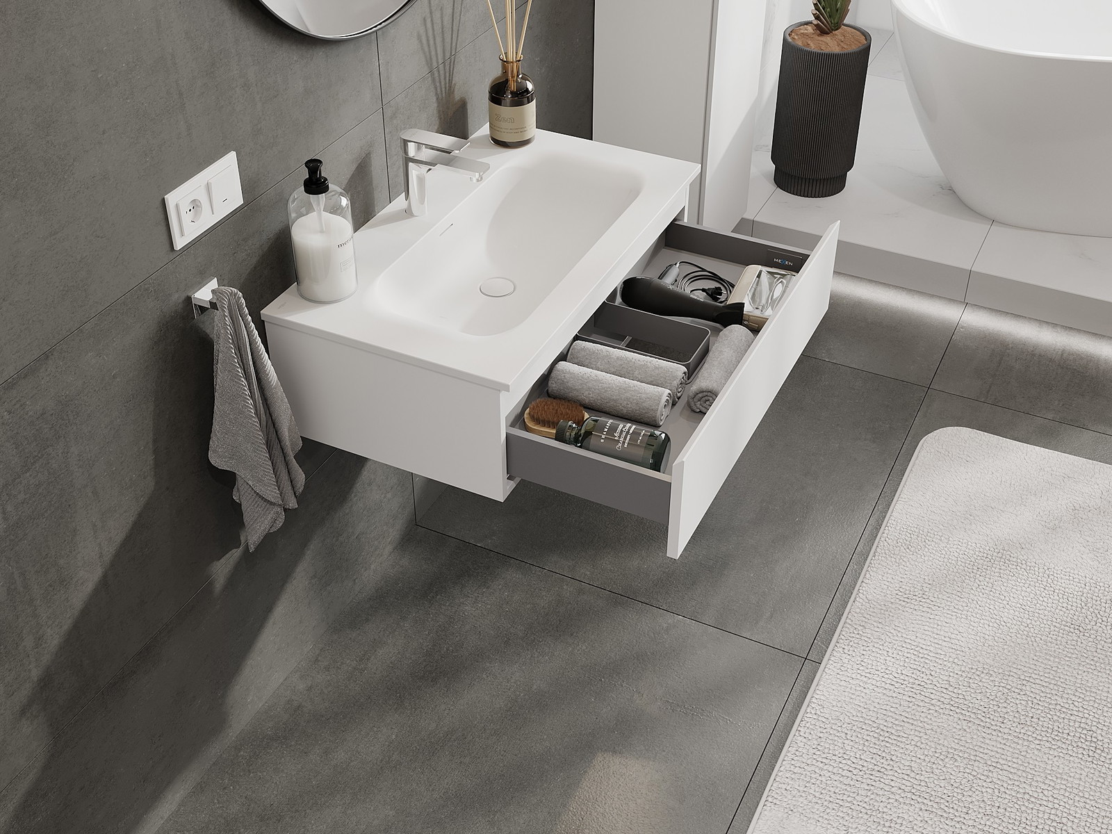Mobilierul nostru modular pentru baie poate fi combinat în diverse configurații de culori, permițând personalizarea completă. Puteți alege atât aspectul, cât și funcțiile fiecărui element, ceea ce permite adaptarea mobilierului la preferințele dvs. stilistice și funcționale.