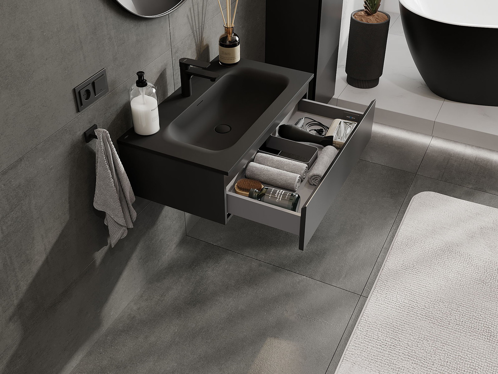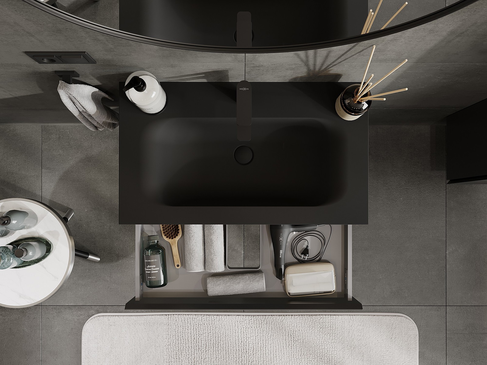Mexen Orio dulap de baie 80 cm cu lavoar Vela, 1 sertar, negru mat - 91A10-08023-1-BF71-W23M71