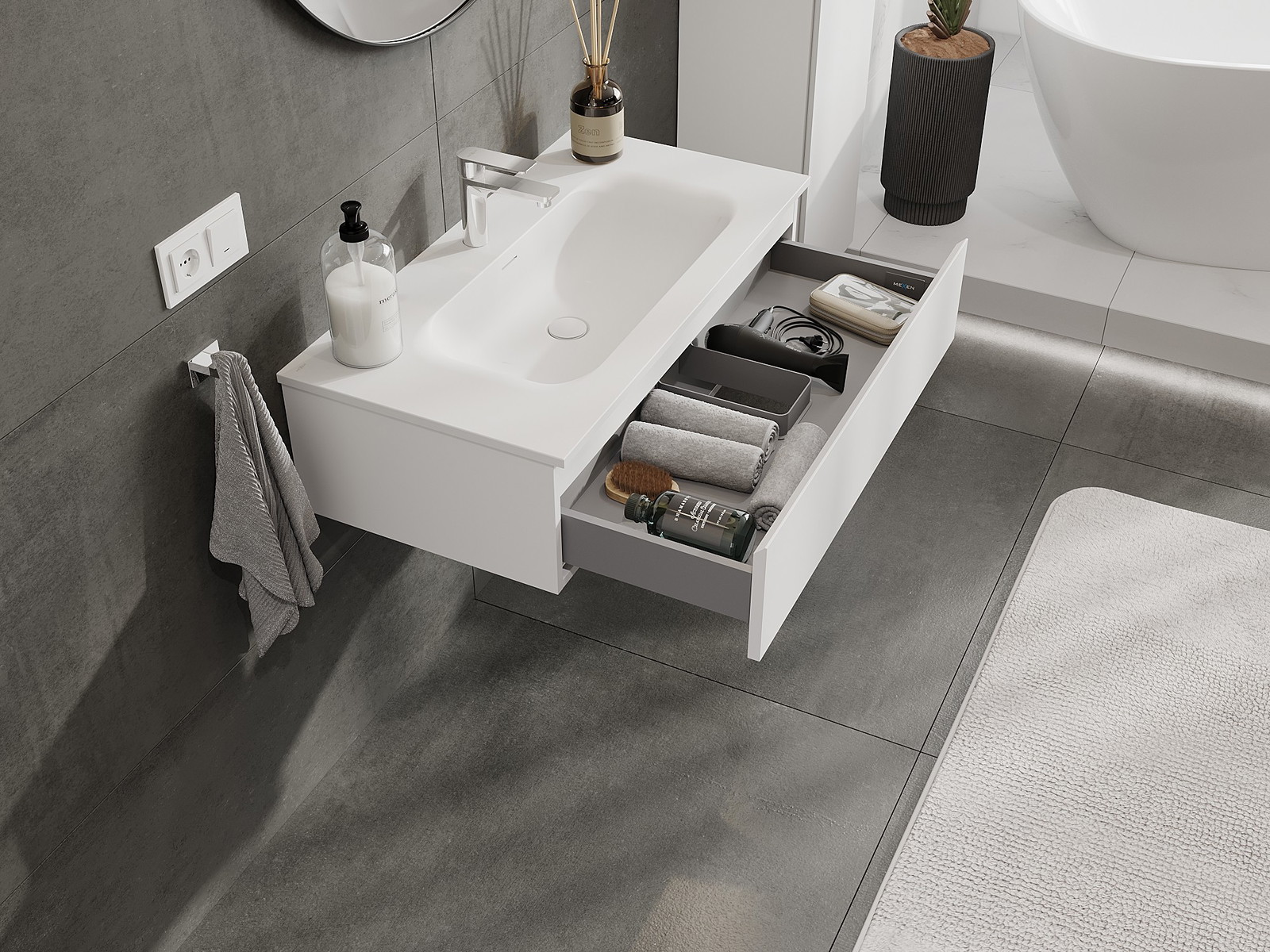 Mobilierul nostru modular pentru baie poate fi combinat în diverse configurații de culori, permițând personalizarea completă. Puteți alege atât aspectul, cât și funcțiile fiecărui element, ceea ce permite adaptarea mobilierului la preferințele dvs. stilistice și funcționale.