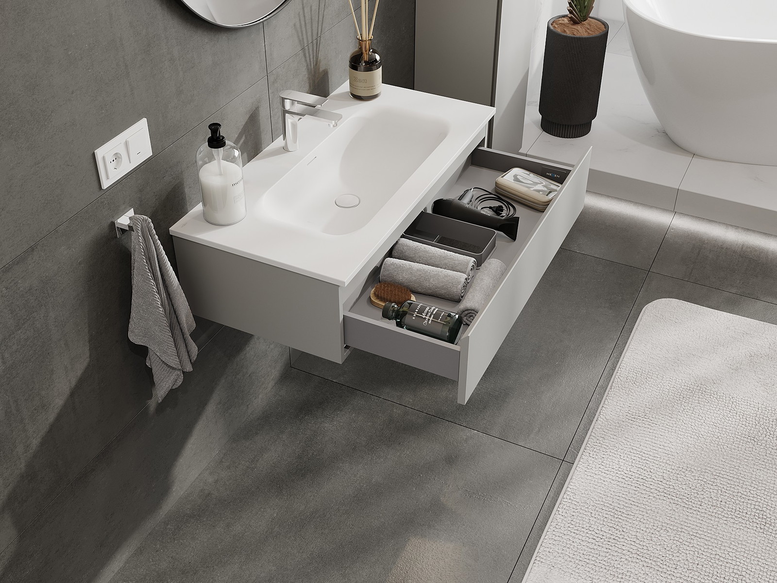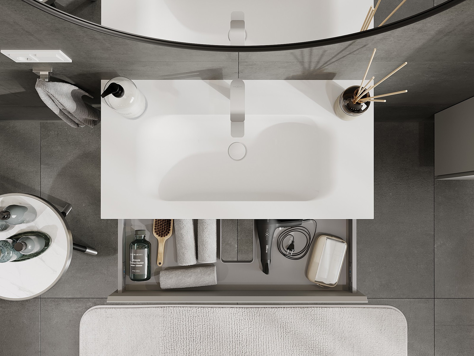 Mexen Orio dulap baie 90 cm cu chiuvetă Vela, 1 sertar, gri mat/alb mat - 91A10-09023-1-BF62-W23M01
