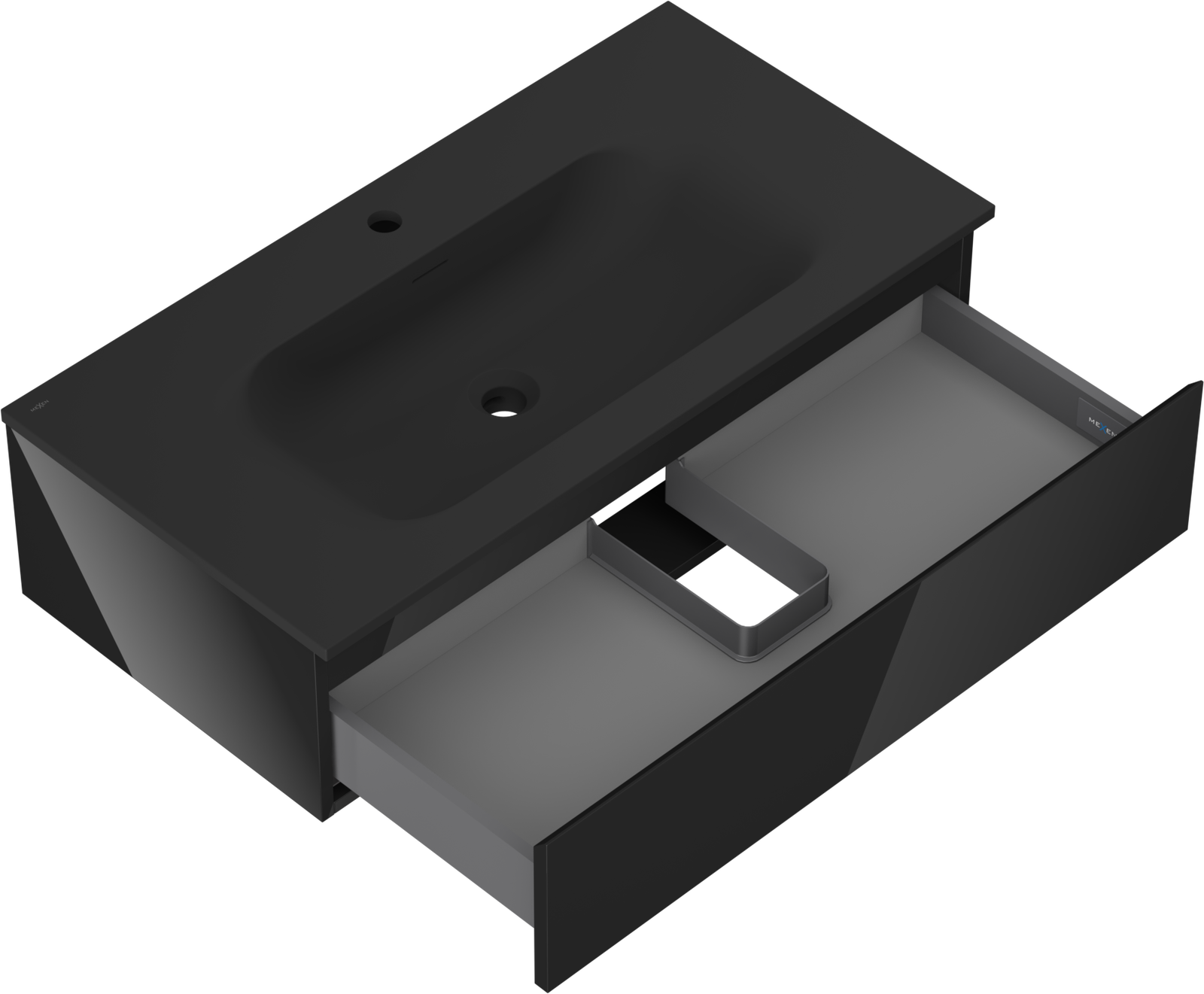 Decupajul în sertar este proiectat în așa fel încât să acomodeze sifonul, care este esențial în instalațiile de lavoare. Datorită acestui fapt, mobila poate fi montată complet funcțională, fără a fi necesară renunțarea la spațiul din sertar în favoarea instalației.