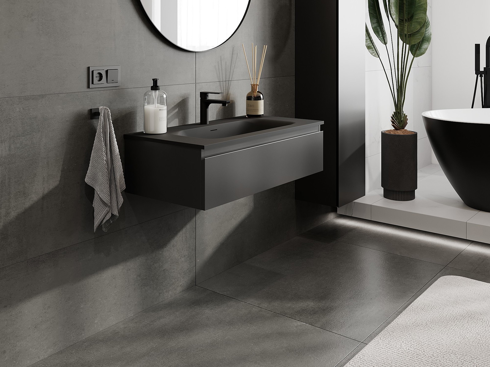 Mexen Orio dulap de baie 90 cm cu lavoar Vela, 1 sertar, negru mat - 91A10-09023-1-BF71-W23M71