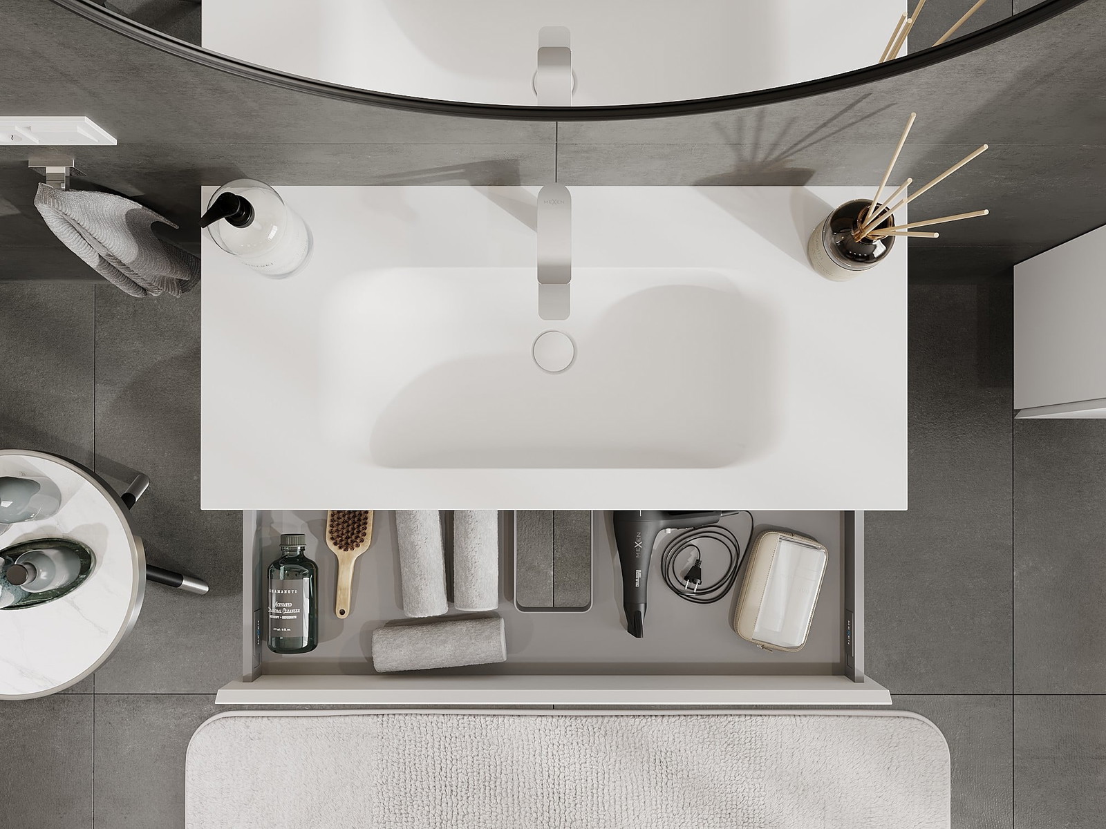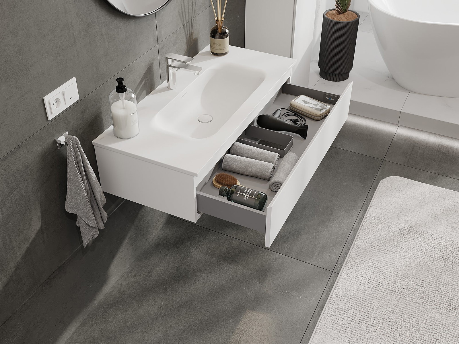 Mexen Orio dulap baie 100 cm cu chiuvetă Vela, 1 sertar, alb mat - 91A10-10023-1-BF01-W23M01