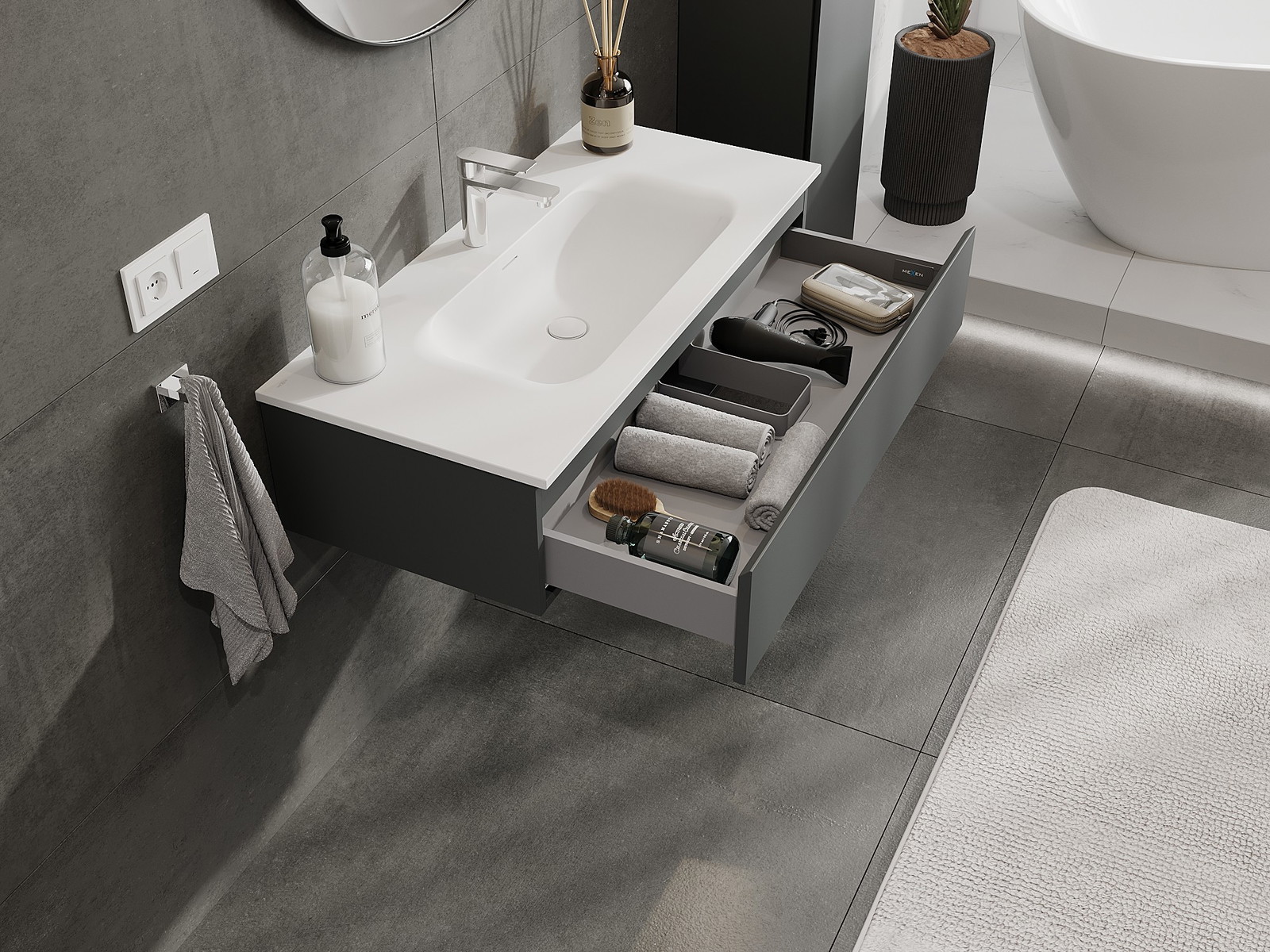 Mexen Orio dulap baie 100 cm cu lavoar Vela, 1 sertar, grafit mat/alb mat - 91A10-10023-1-BF66-W23M01